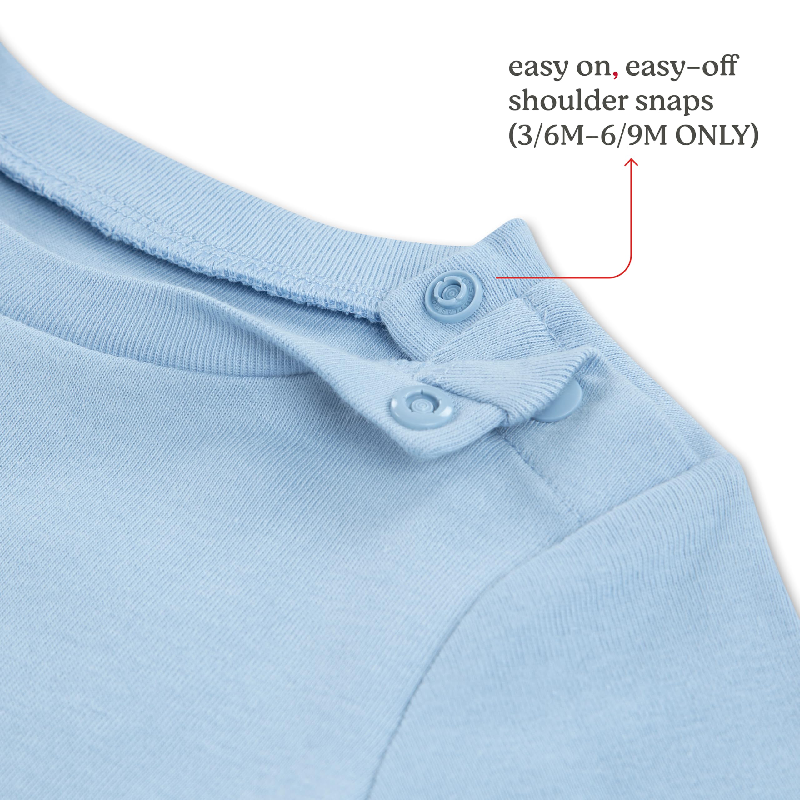 SNAPPY EASY ON/OFF: Baby tees feature snappy tape at the shoulders, making dressing and diaper changes a total breeze—no more struggling to get them on or off.