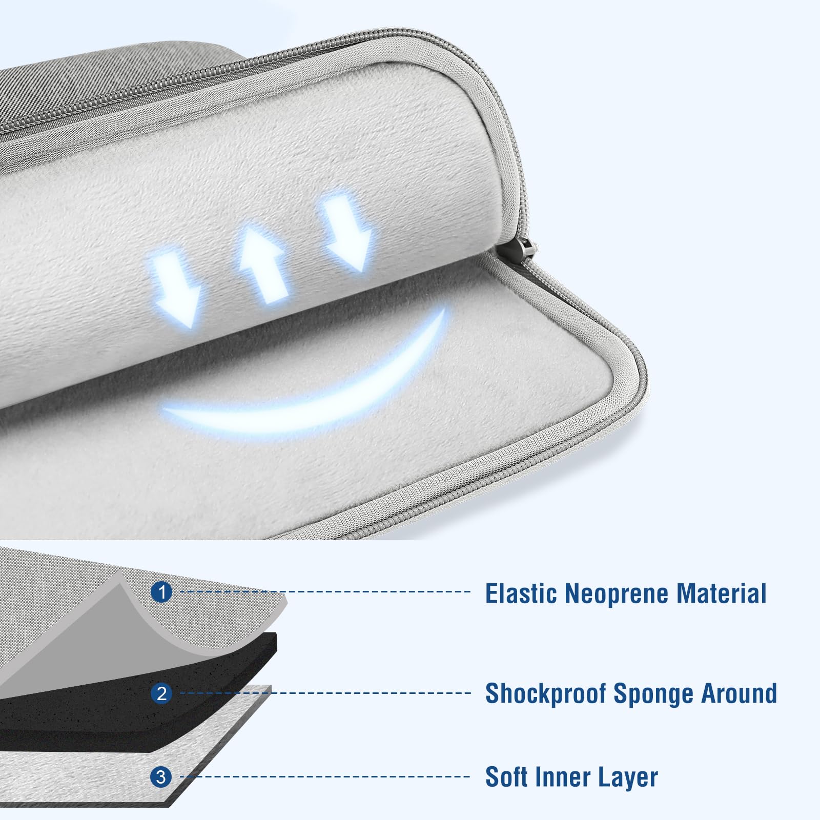 Features a polyester foam padding layer and fluffy fleece fabric lining for bump and shock absorption and protection of your device against bump, shock and accidental scratches.