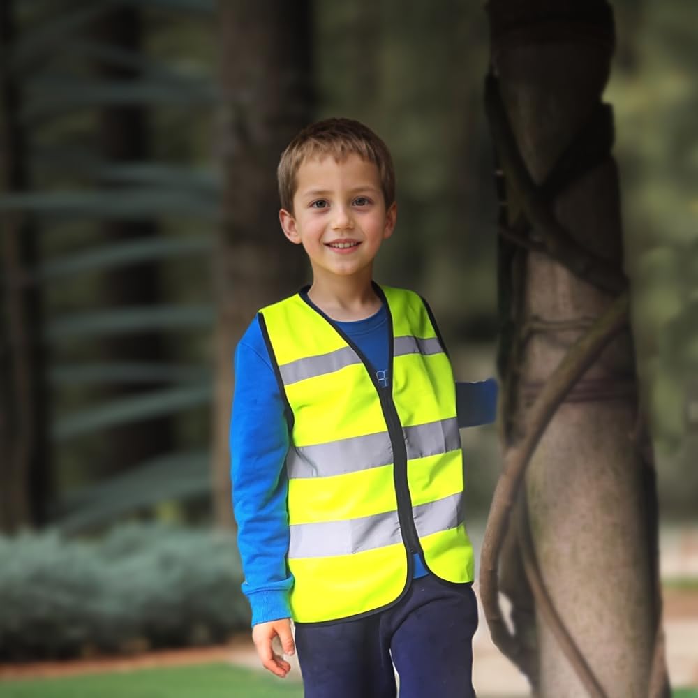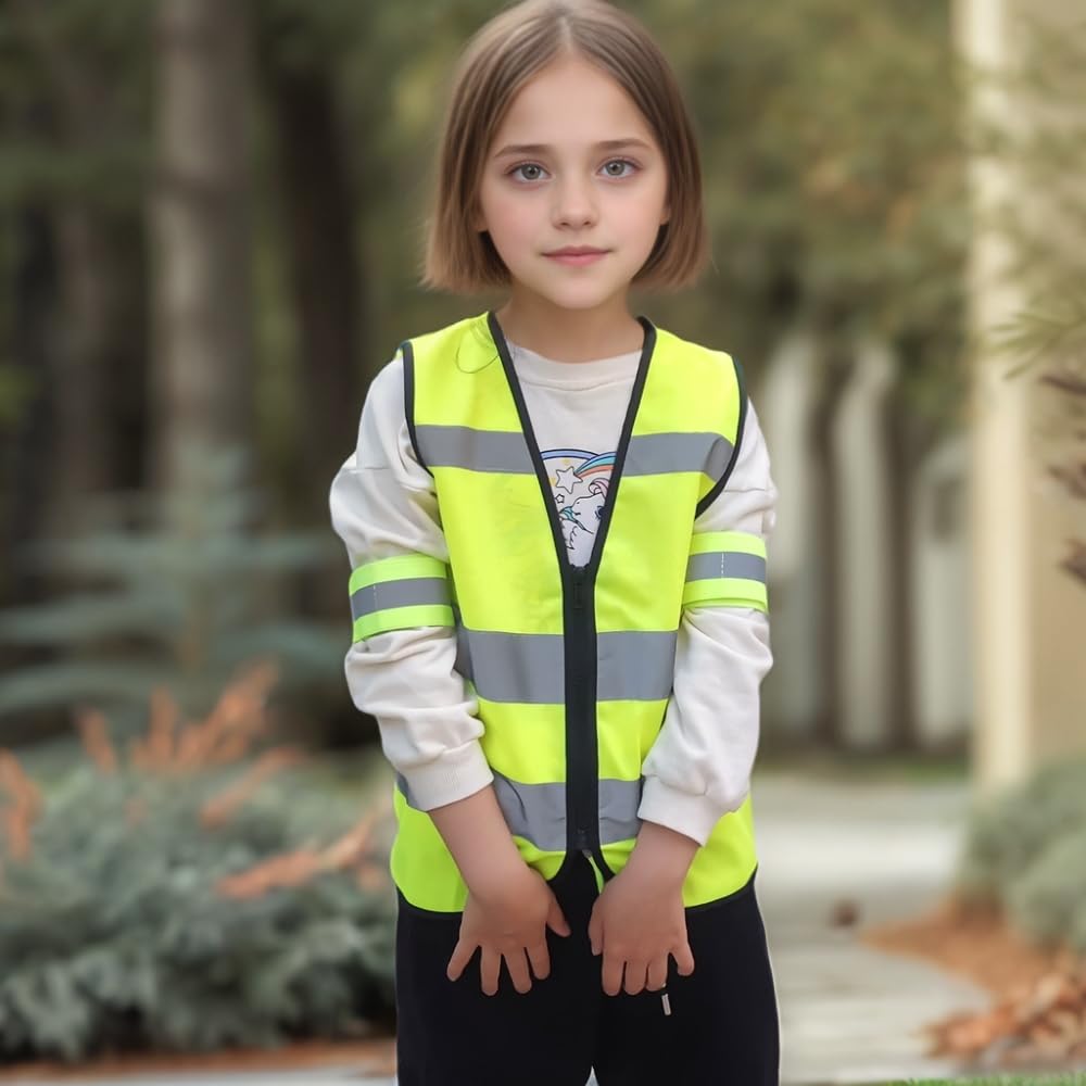 HIGH 360º VISIBILITY: This High visibility kids reflective vest(2Pack) not only can visible from 750 feet or more in night, but also has a 360º coverage in all weather conditions, Hi-Vis Reflective Strips cover the waist ,the shoulders, and the back area. Children will have a 361°protection while they were Cycling,Running or construction at night or low light conditions.