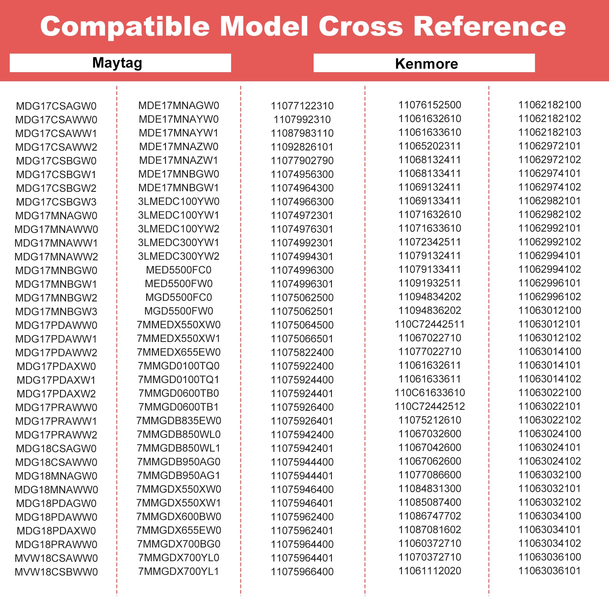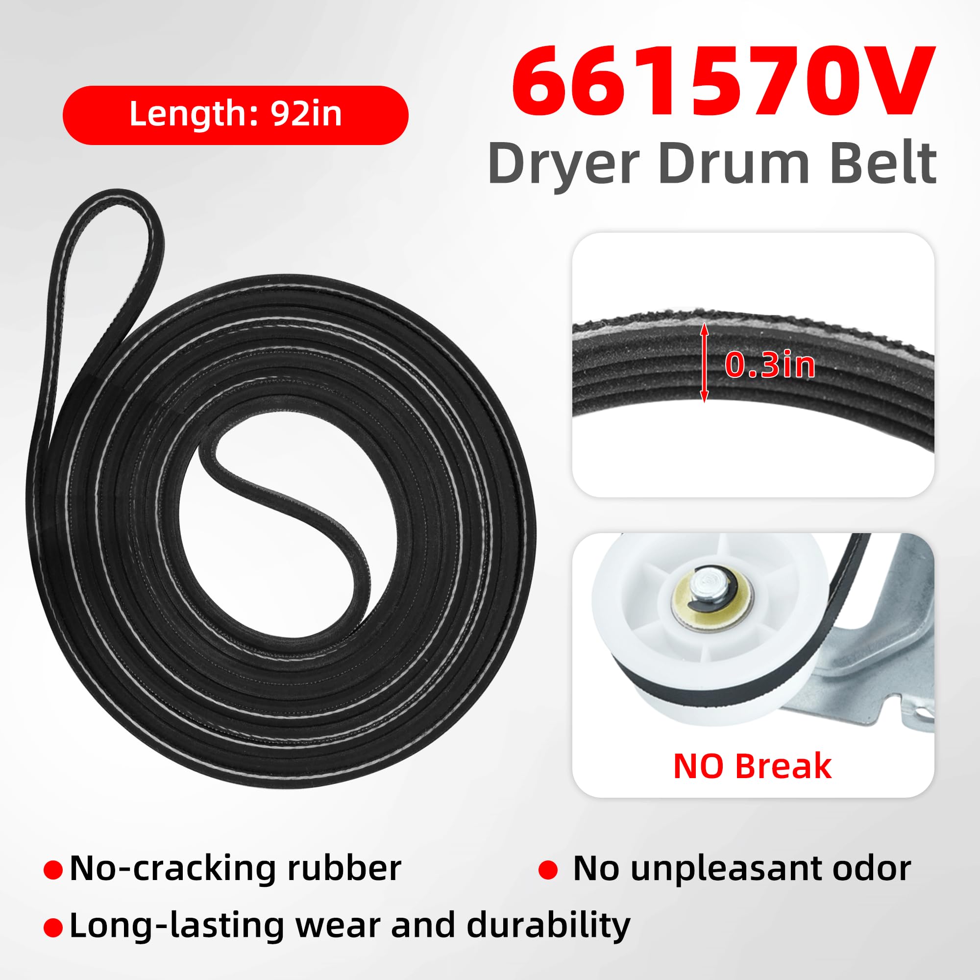 [Fit for Maytag Dryer Parts]: Replace model MEDB855DC2 YMEDB855DC0 YMEDB855DC1 MEDB855DC0 MEDB835DW4 MGDB835DW4 MEDB855DC4 MEDB835DC4 GEW9250PW1 GEW9250PW0 GGW9250PW3 GGW9200LW1 MEDB835DC3 MEDB835DW MEDC215EW1 MEDB835DW3 MEDB765fW0(The belt in our kit is part number 661570V, the Maytag series is compatible with model W10610886,please DOUBLE CHECK to see if your dryer fit for tour belt before ordering)