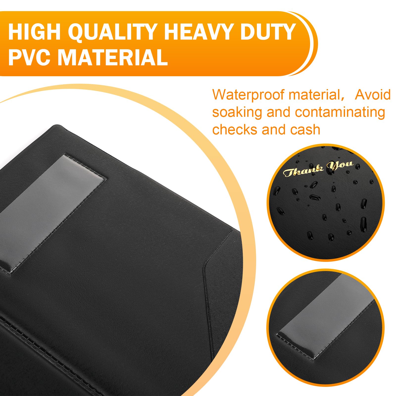 EASY TO USE: the interior of the serving book is padded and sponged, making it easy for you to write matters on the top of the menu holder. The check book cover is foil stamped with “Thank You” and has exquisite workmanship and even seams, giving each checkbook a touch of sophistication and enhancing your brand image