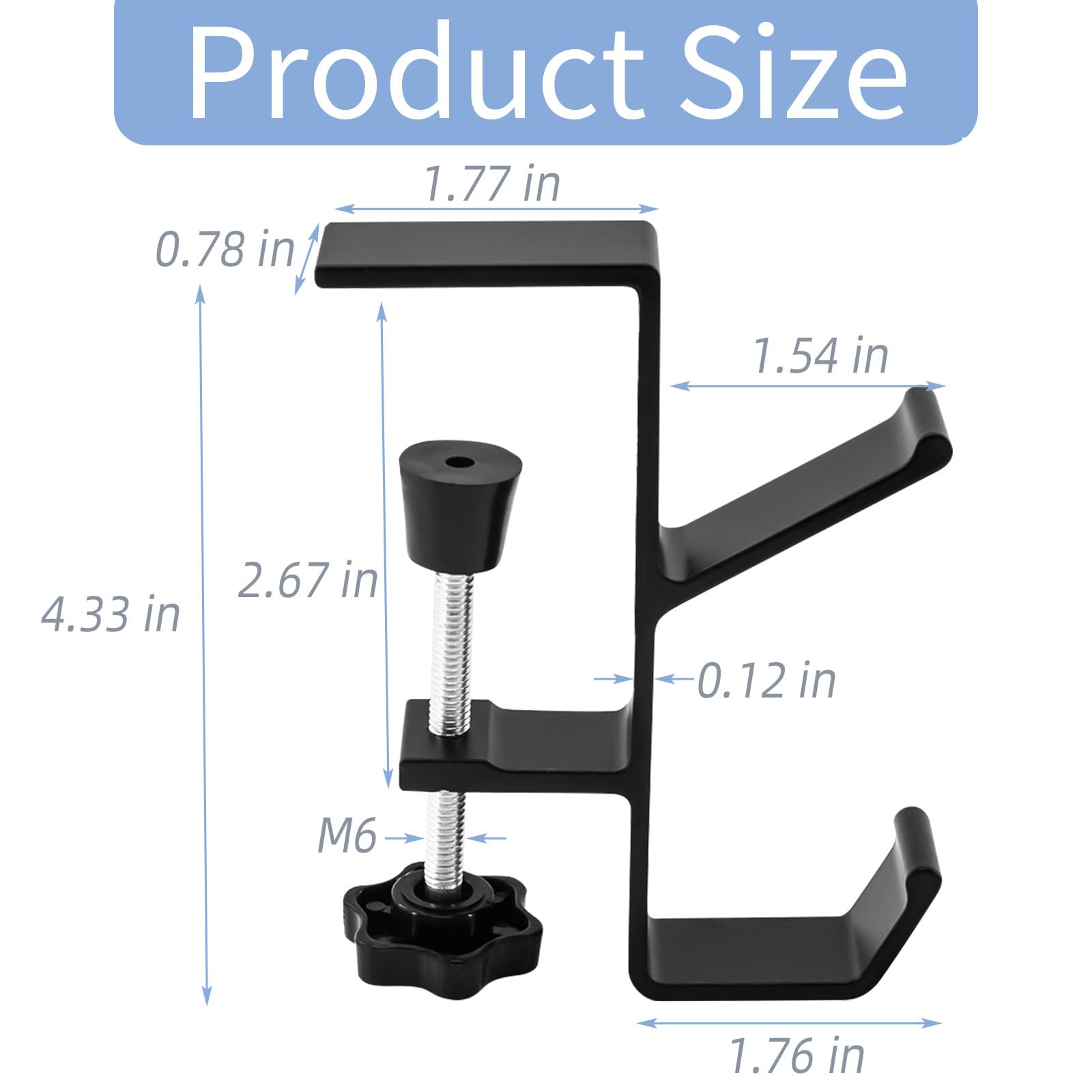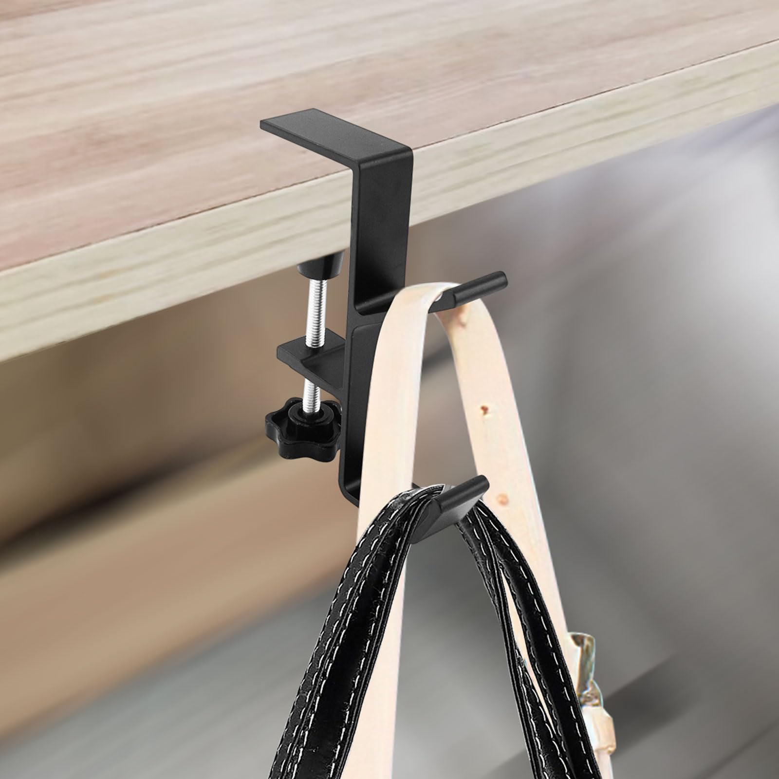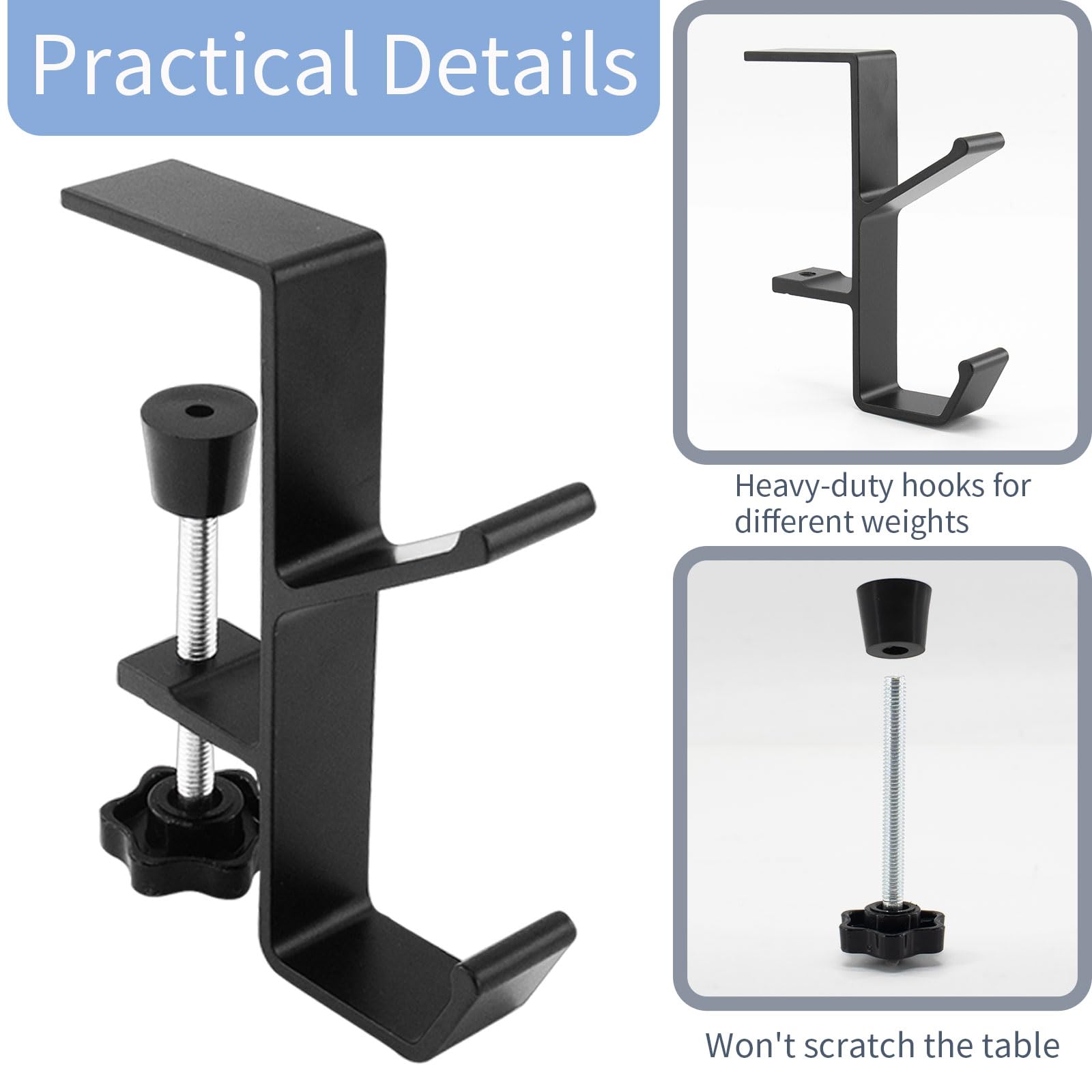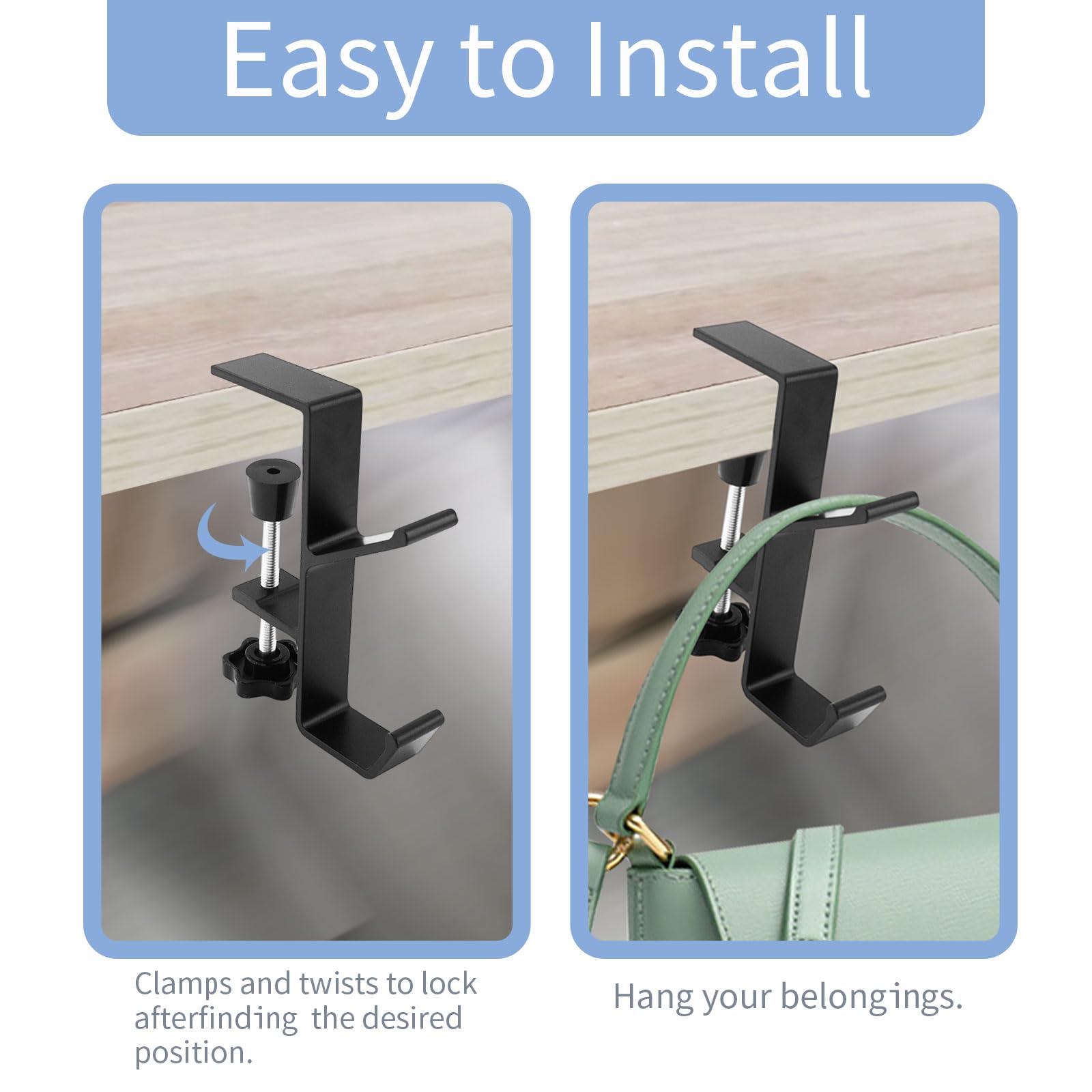 Adjustable Desk Mount Hooks - Clamp hooks can be easily rotated and tightened to fit the thickness of the table (10mm - 55mm), allowing it to be securely fastened to most tables.