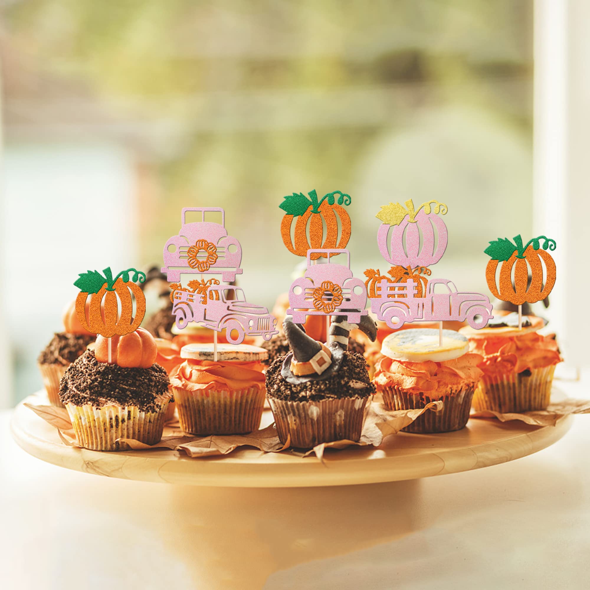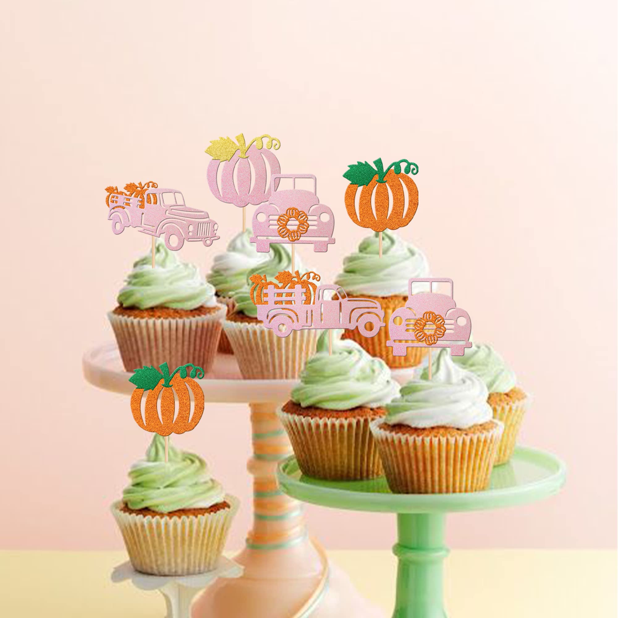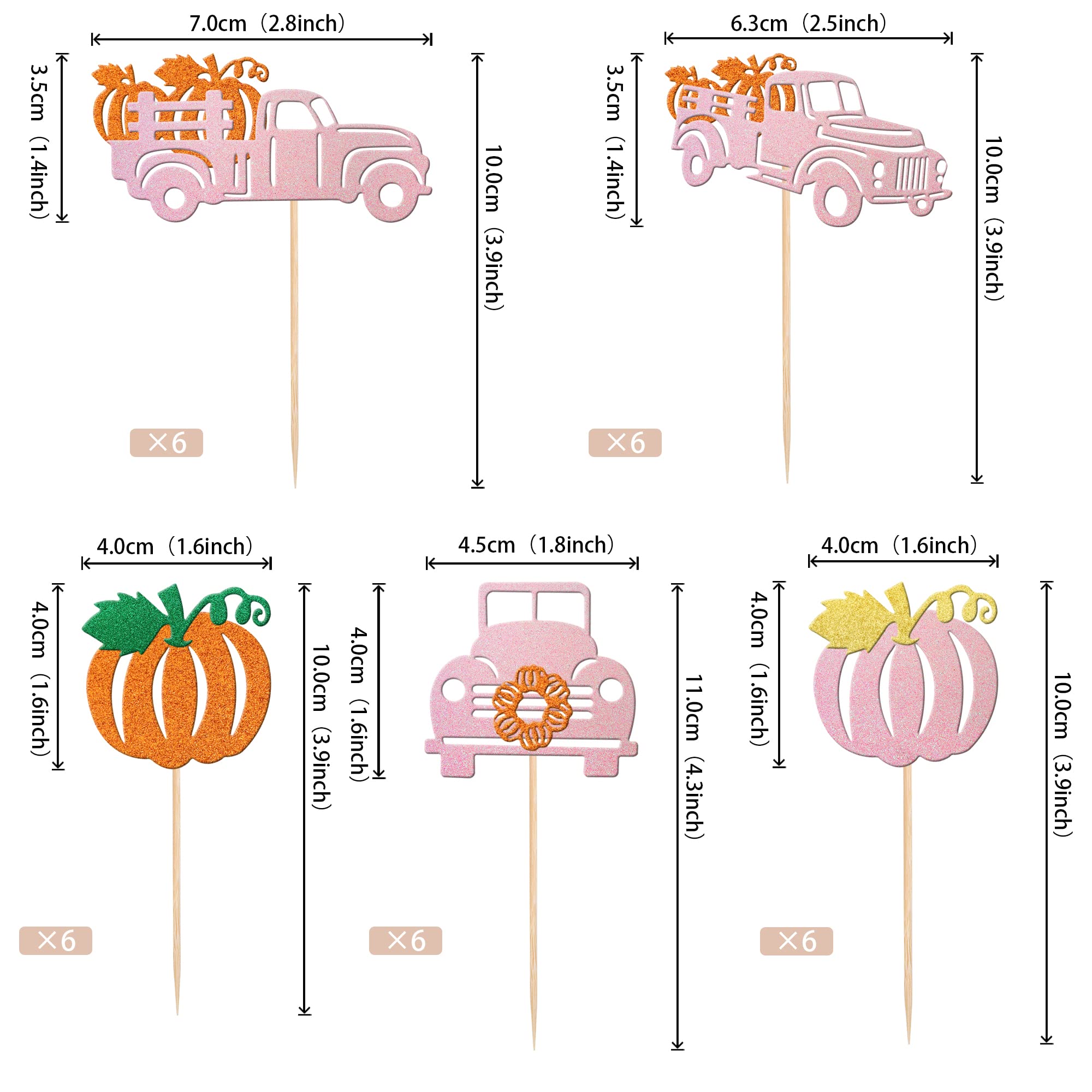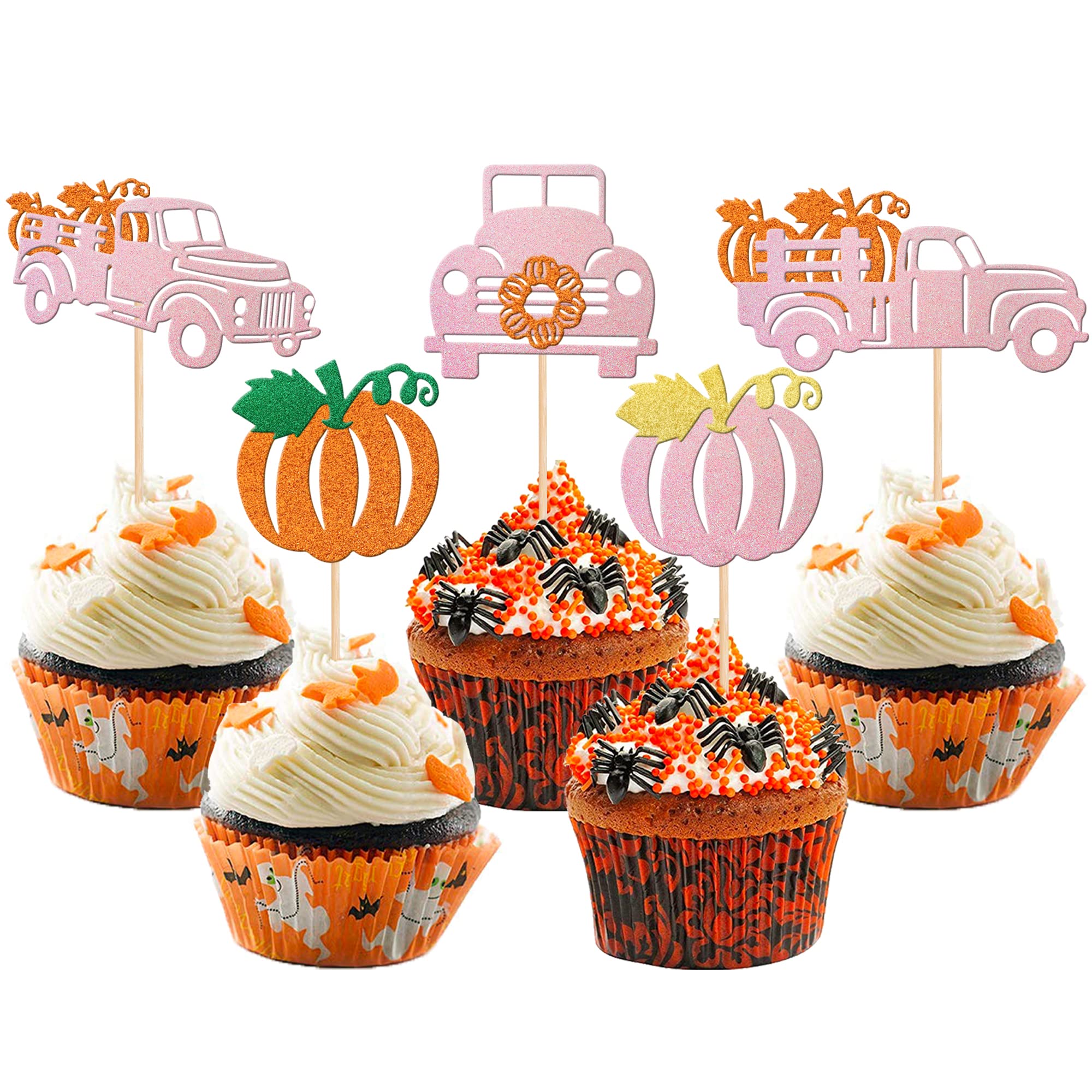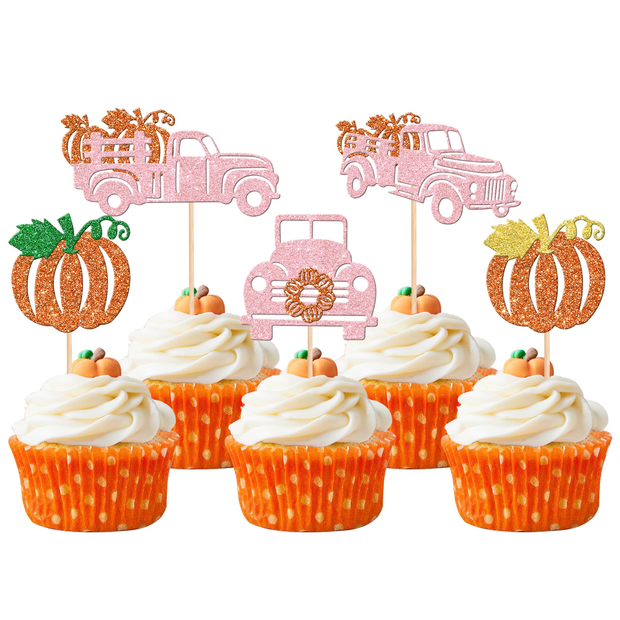 Truck Pumpkin Fall Harvest Thanksgiving Theme Baby Shower Wedding Birthday Party Cupcake Decorations Supplies Perfect for truck pumpkin theme party, fall harvest theme party, thanksgiving day theme party, wedding theme party, baby shower theme party,kids birthday theme party cupcake decorations supplies. Pack of 30 pcs,6 pcs each of the words little pumpkin and pumpkin. The size is 2.8*3.9 inch/2.5*3.9 inch/1.6*3.9 inch/1.8*4.3 inch/1.6*3.9 inch ( with stick ) Made of high quality paper card stock and food grade sticks,thick and thick and sturdy. These cupcake toppers are single glitter, the back is white, and they are intended for decoration only, please do not put them in oven or microwave. If the item you received has any defects, please contact us for refund.we will deal with it within 24 hours.