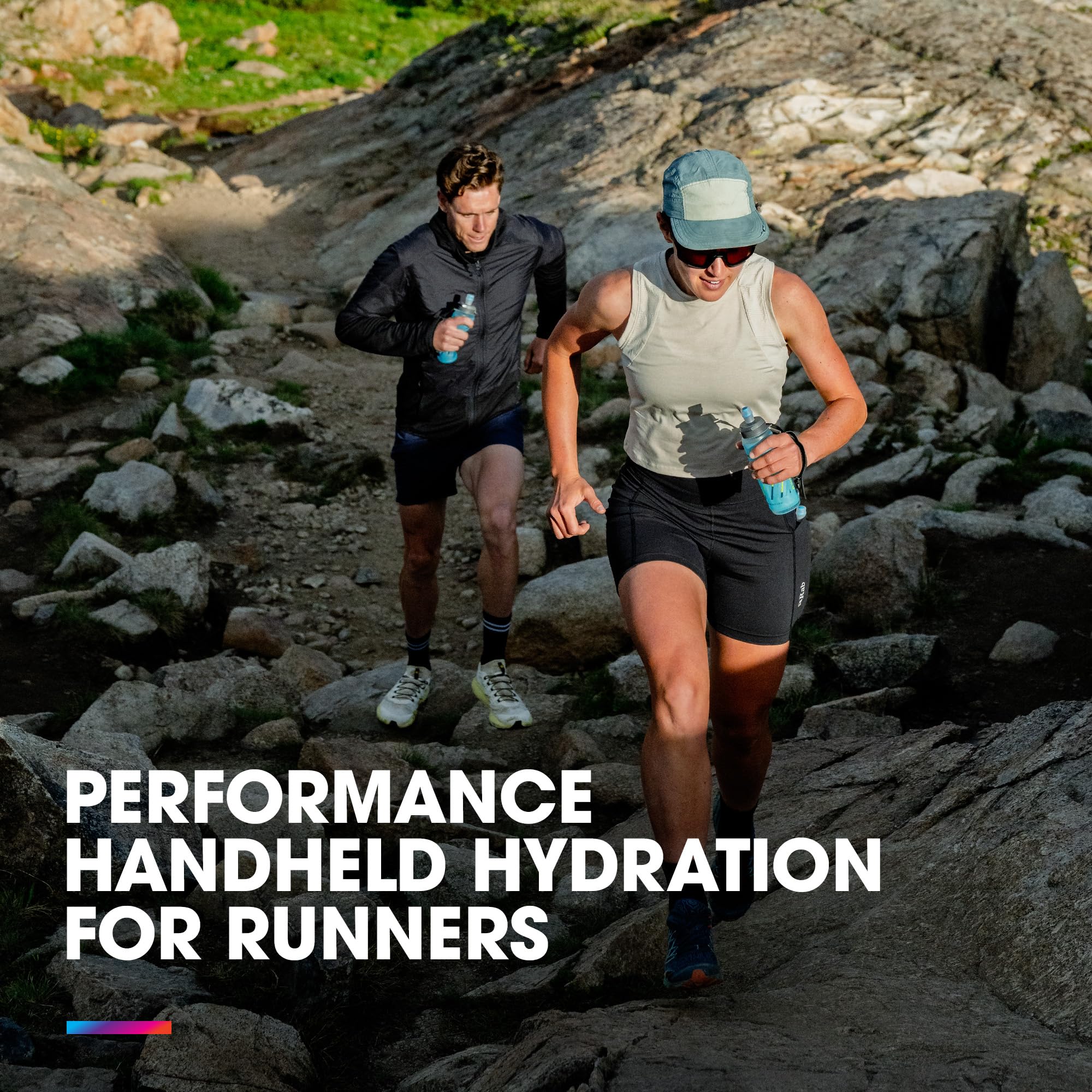 Racing or training, take matters into your own hands. This minimalist soft-flask handheld features an innovative thumb loop that allows you to hold the flask securely without wasting energy gripping or squeezing. Versatile and ambidextrous, it can be held in either hand and the soft, neoprene loop provides a comfortable and chafe-free fit. The adjustable, sweatproof strap fits most hand sizes and snuggly stays in place with a Velcro-style closure. Topped with our SpeedFill™ Cap for quick refills on the go. SkyFlask 350ml - Item Includes Ambidextrous and adjustable thumb loop secures flask without gripping or squeezing. Speedfill cap for fast filling. Basic care and use instructions Product Weights and Dims: SkyFlask 350ml Capacity: 350 ml / 12 fl oz Weight: 59.8 g / 2.1 oz Materials: TPU, PP, HDPE, Silicone, Nylon, Neoprene Dimensions: 203 mm x 71.2 mm / 8.1 in x 2.8 in