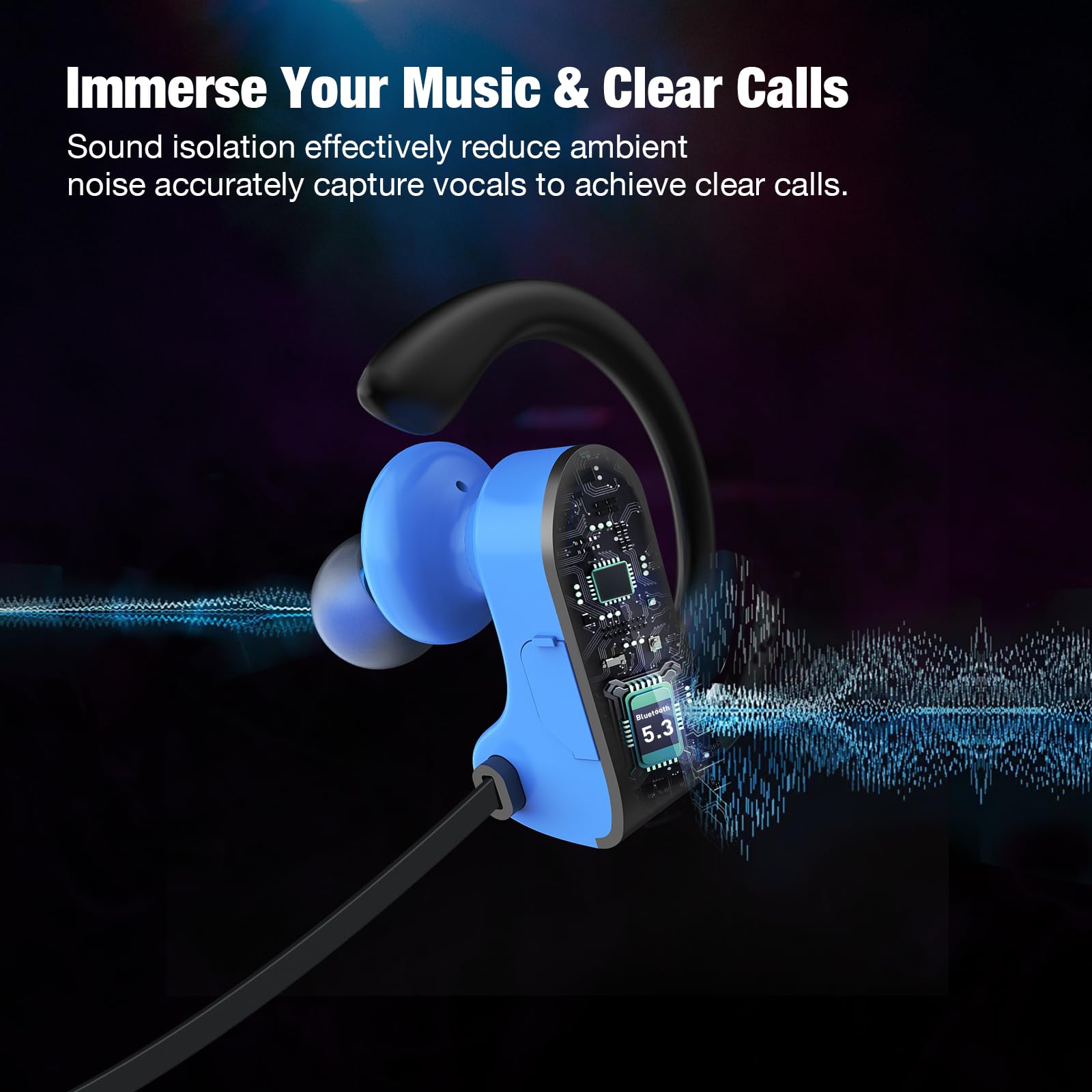 JOYWISE Bluetooth Headphones, Wireless Headphones 16H Playtime Wireless Earbuds with Mic Stereo in-Ear Earphones, IPX7 Waterproof Sports Headphone Sound Isolation Headsets for Running, Workout Blue