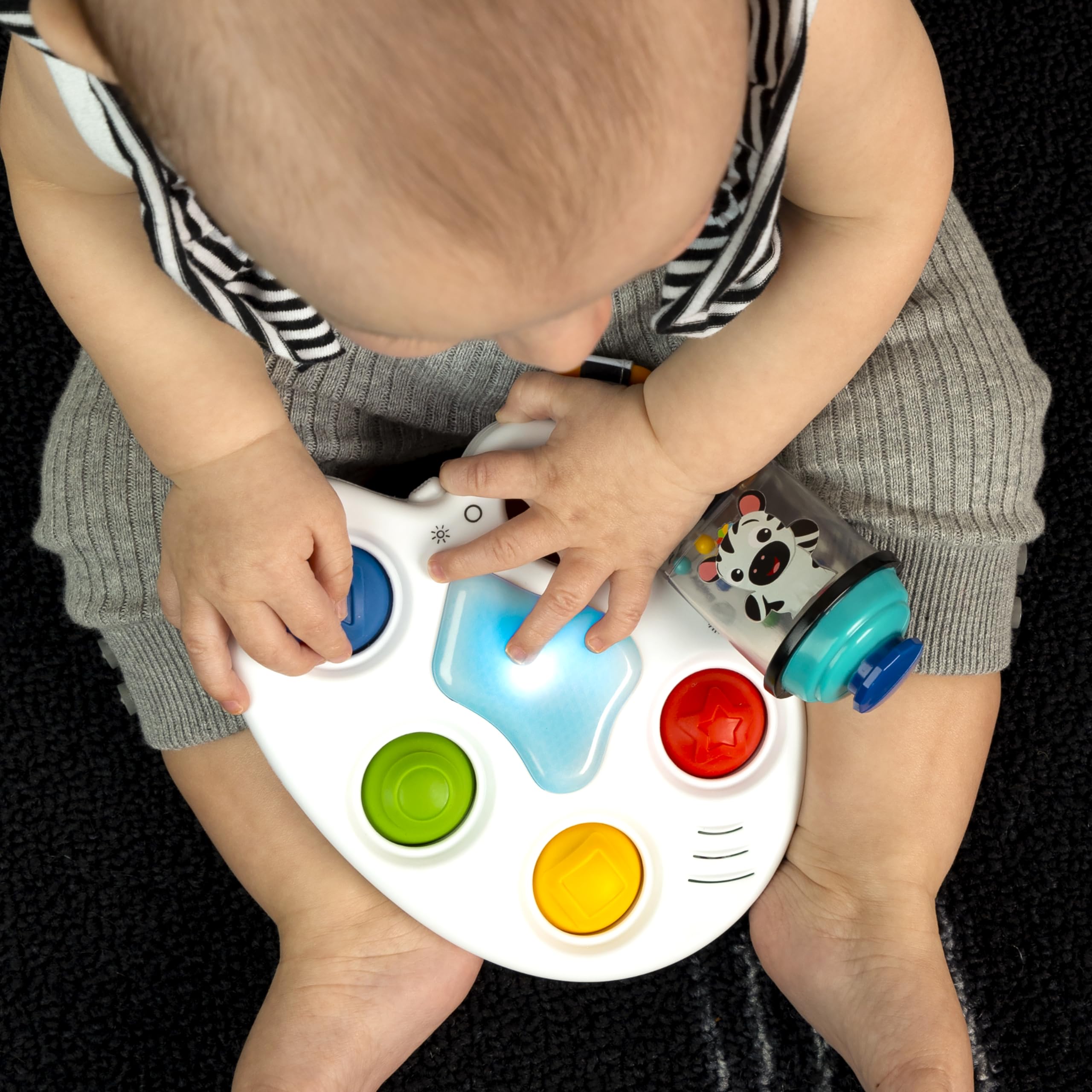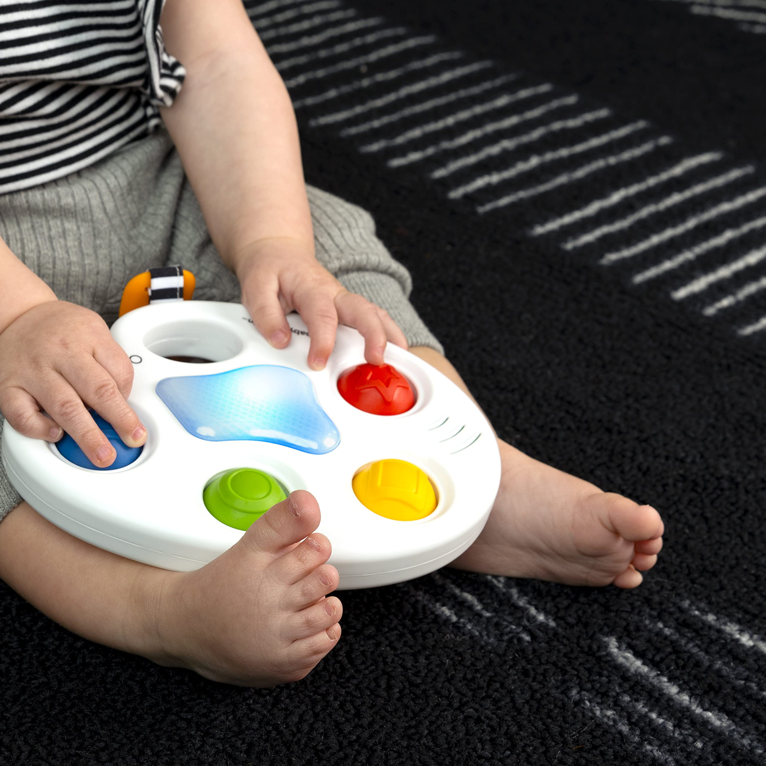 The Baby Einstein Color Palette Popper Sensory Toy engages baby’s senses with lights, music, and 4 bubble poppers.
