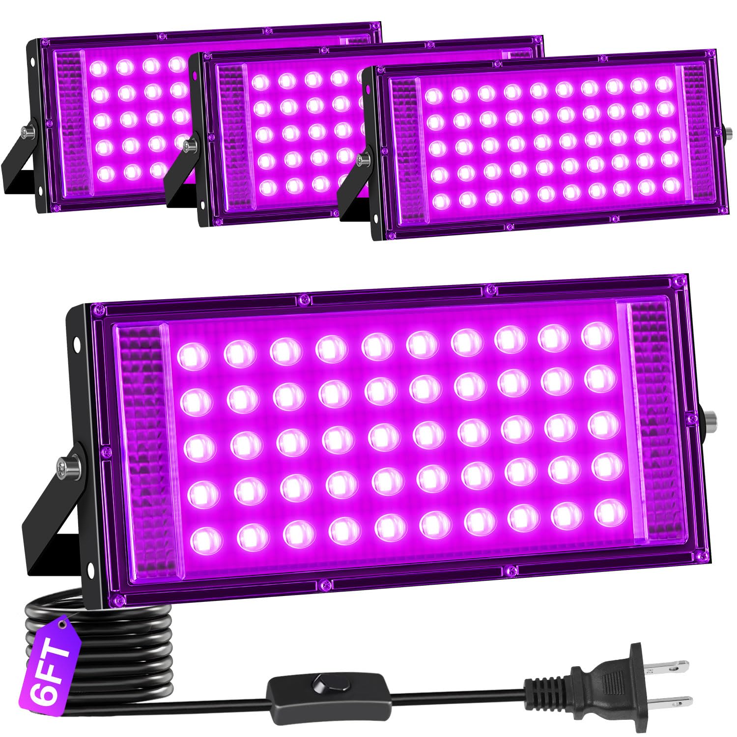 Convenient Switch and Long Power Cable: It is easy to turn the blacklight flood light on and off with an ON/OFF switch built into the power cord, no need to unplug. Just turn on the switch and you will create a magic blacklight ambiance. Comes with a 5 FT power cord which is long enough for flexible placement, allowing you to install the light on high or distant places. Works with AC 120V