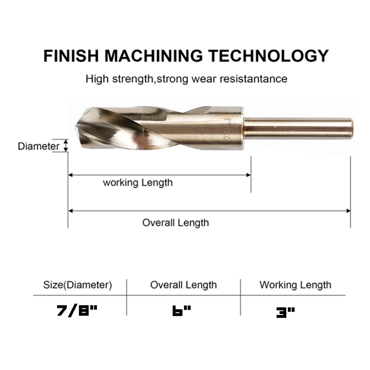 1 PACK OF 7/8" COBALT DRILL BITS - 1/2" Diameter with a Flute Length of 3" and Total length of 6"