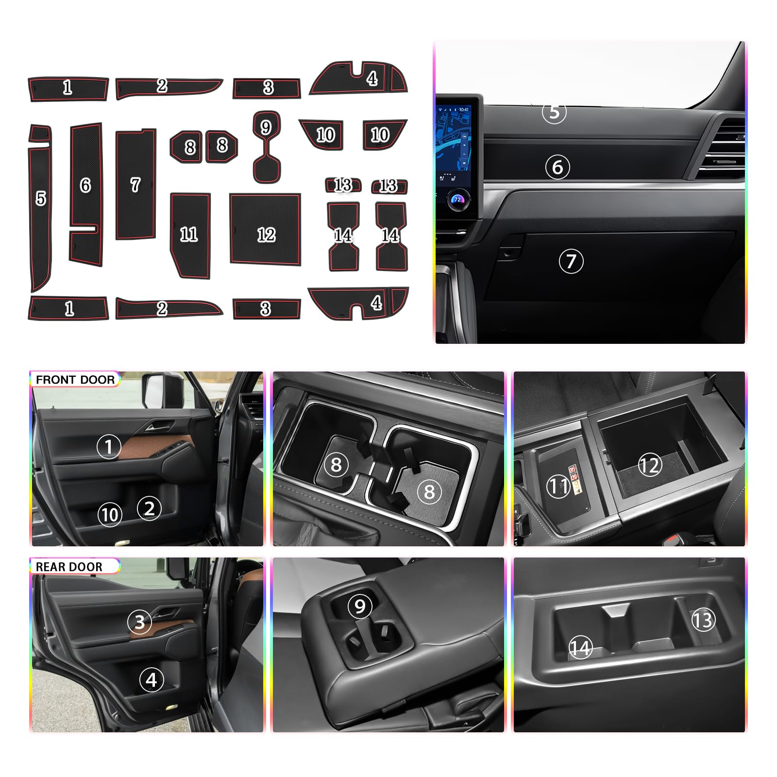 2024 2025 2026 GX550 (Premium/Luxury/Overtrail) Car Door Slot Mats 2024 2025 2026 GX550 Accessories Designed for 2024 2025 2026 GX550 Premium/Luxury/Overtrail original car enhance the aesthetic effect. Made from high quality rubber,Easy to clean and washable Put it on your 2024 2025 2026 GX550 (Premium/Luxury/Overtrail) front door compartments, cup holders, and center console area,protect from dust,minor spills and scratches Install directly, no need to modify or cut, just put it in the correct place Cars breed bacteria that will definitely hurt your body, so it's necessary to put the mat in the 2024 2025 2026 GX550 Premium/Luxury/Overtrail Why do you choose SKTU 2024 2025 2026 GX550 (Premium/Luxury/Overtrail) door slot mats? 1.We strictly control every production link, From choose material to make the 2024 2025 2026 GX550 (Premium/Luxury/Overtrail) door slot mats, No errors are allowed. 2.We have our own R&D personnel to collect the most accurate data. 3.We use the premium quality material to ensure the 2024 2025 2026 GX550 car floor mat's quality 4.We always put first the customer's satisfaction, try our best to solve customer's any problem.