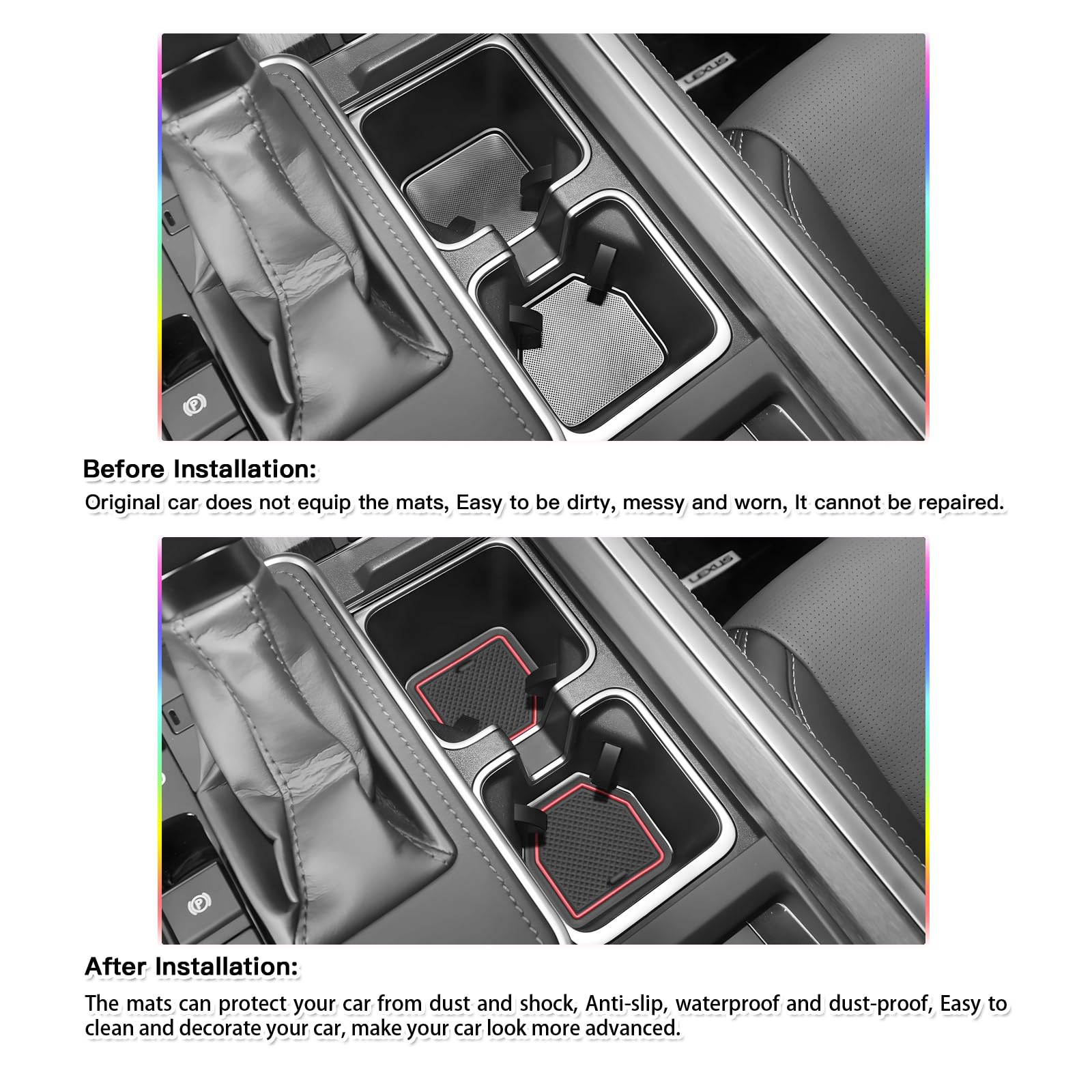Practical and Anti-skid Rubber pads can be placed in 2024 2025 2026 GX550 (Premium/Luxury/Overtrail) cup holders, door slots, center consoles, dashboards, armrest storage box, etc