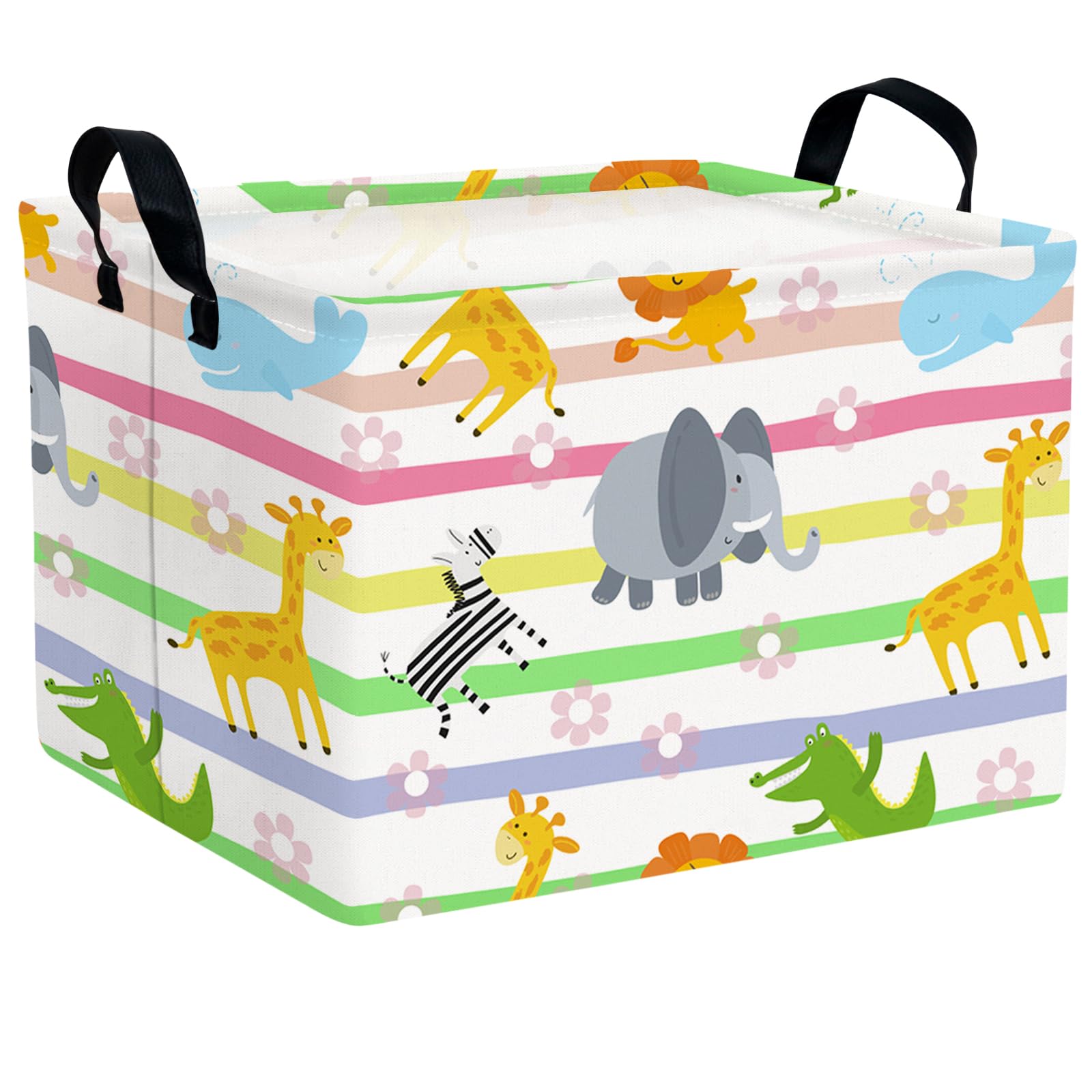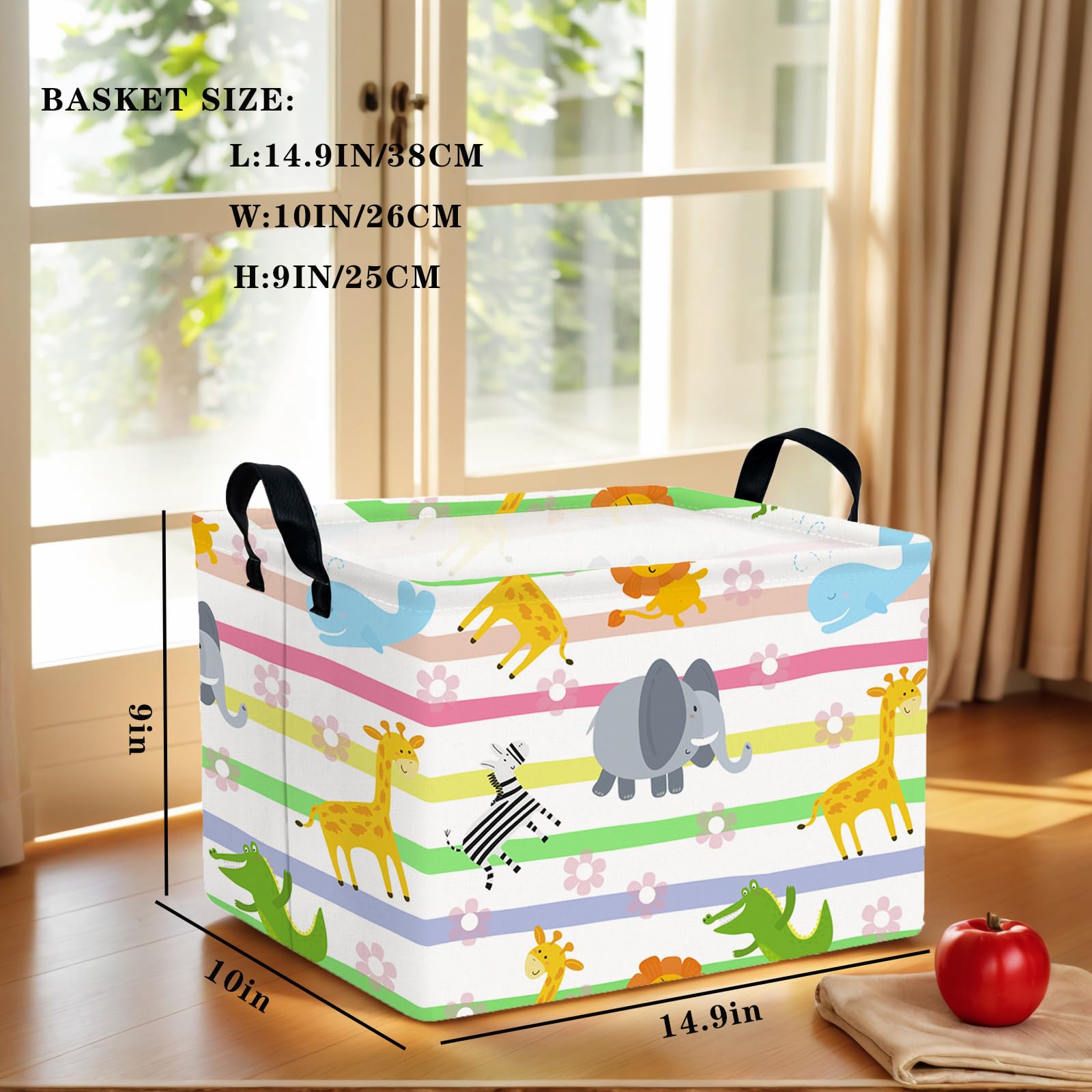 STORAGE BASKET: Measuring 14.9(L)×10(W)×9(H) inches, this adorable storage basket is the perfect size for organizing toys, baby clothes, and other essentials. It can also be used as a toy bin, pet's stuff storage, or even as a gift basket. Its versatile design makes it suitable for use in camping, student apartments, closets, shelves, and kitchens.