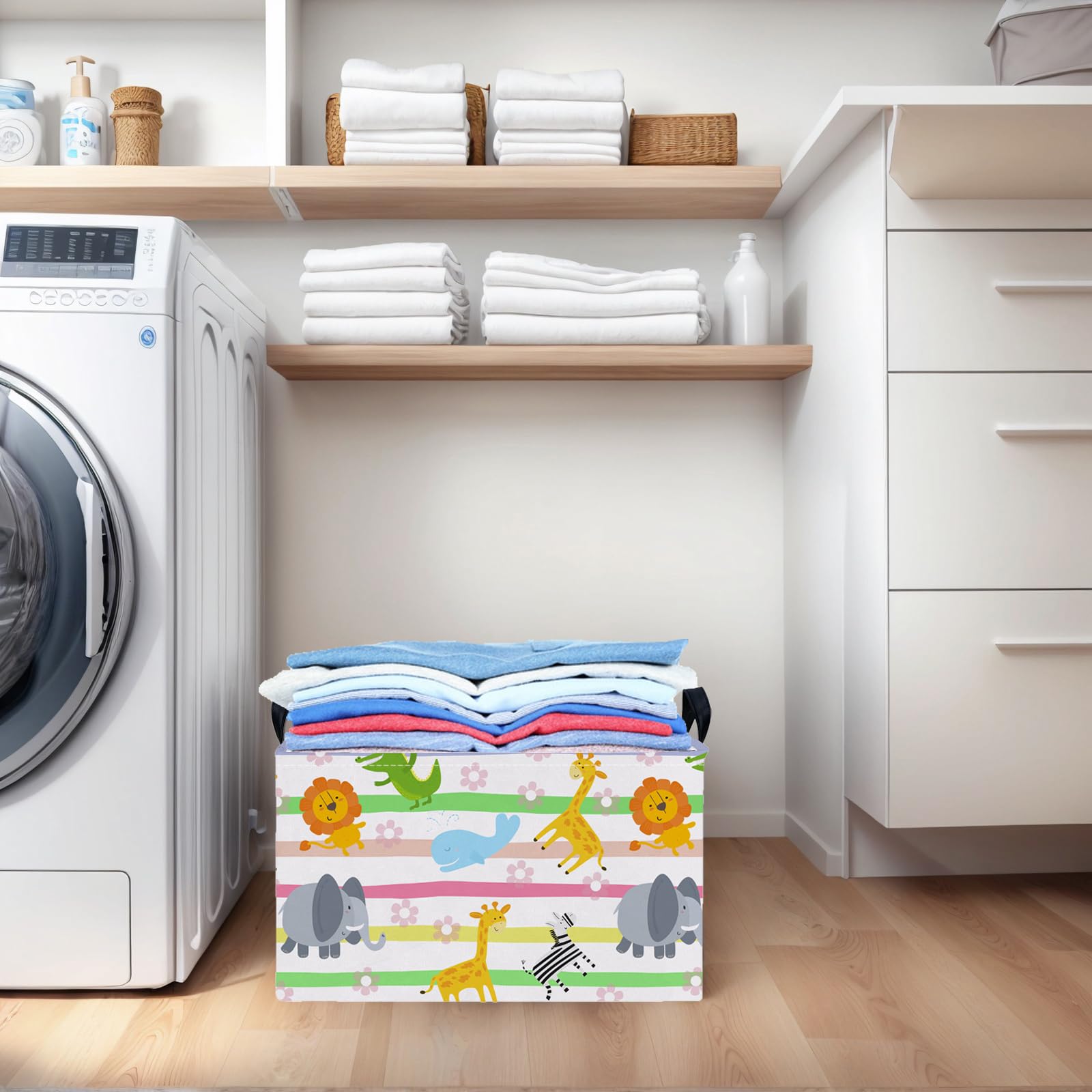 PORTABLE AND FOLDABLE: Equipped with two sturdy handles, this cute storage bin is designed for portability, allowing you to easily move it wherever needed. When not in use, it can be folded flat for convenient storage, making it a space-saving solution for any home.