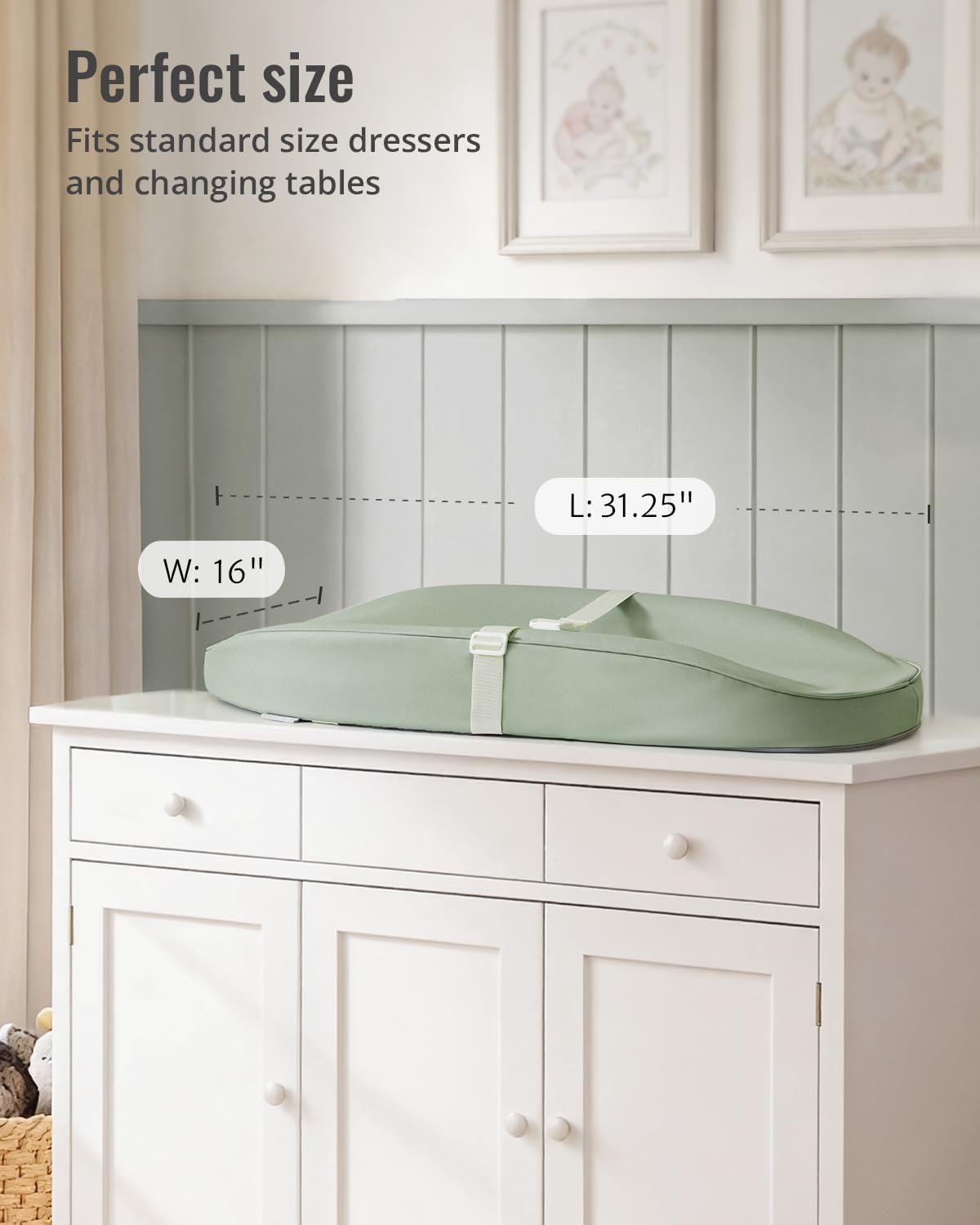 Perfect Size - The baby changing pad size at 31.25"L * 16"W * 4.25"H, fits all standard changing tables and most dressers. With lightweight styling, it's convenient for on-the-go traveling, daycare and more