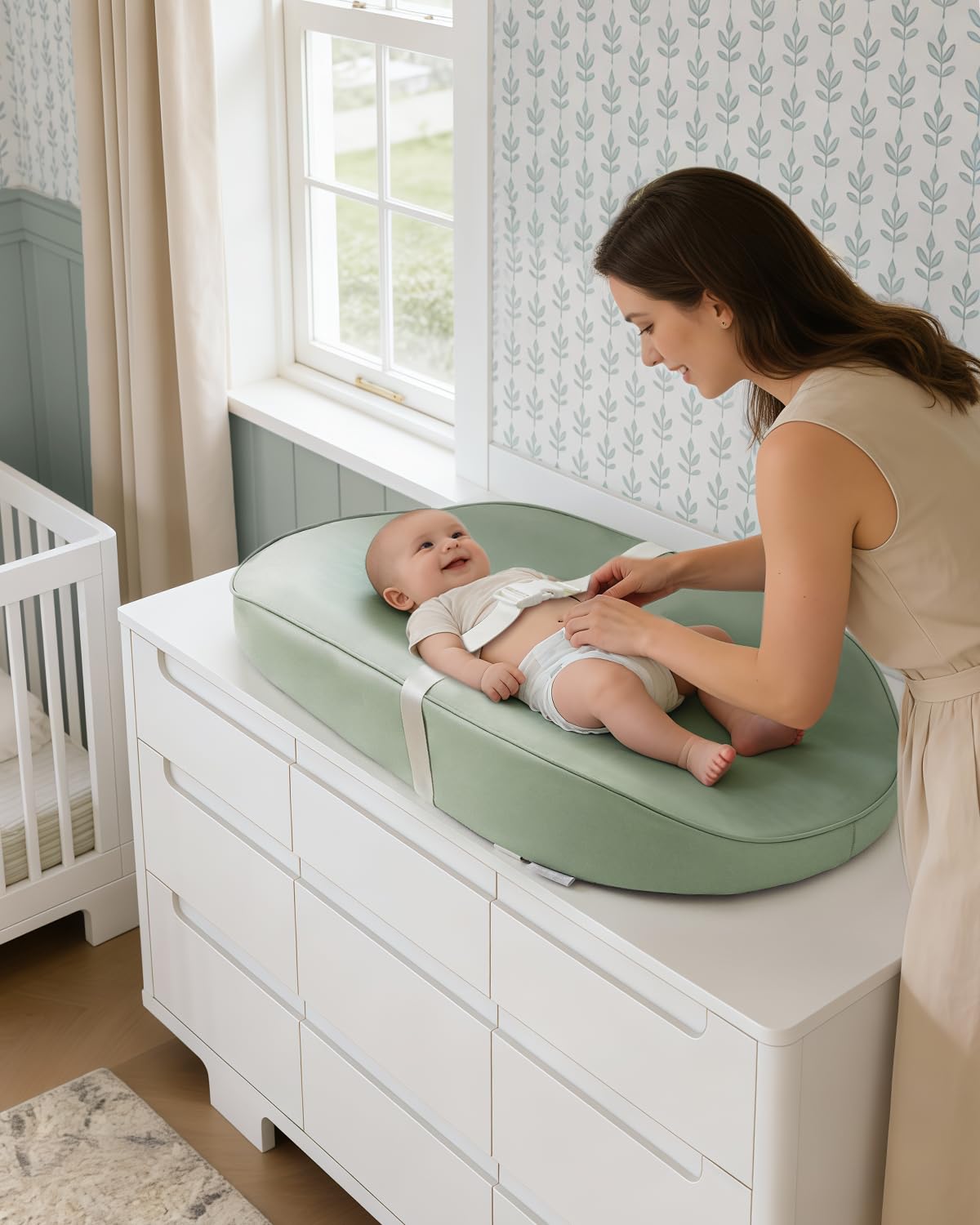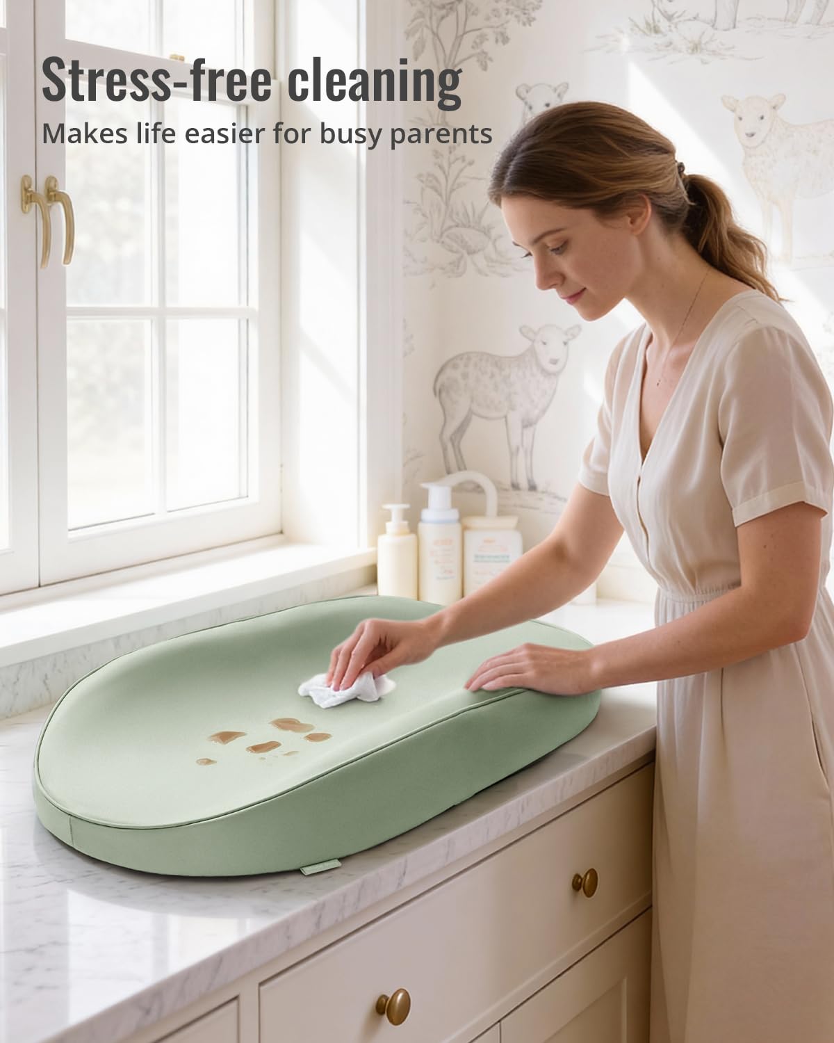 Stylish Design & Nice Gift - This light green baby changing pad infuses your nursery with a refreshing vibe, bringing the tranquility of nature to your nursery. It's the first choice for modern parents, an incomparable baby shower gift, baby birthday gift that new parents will love
