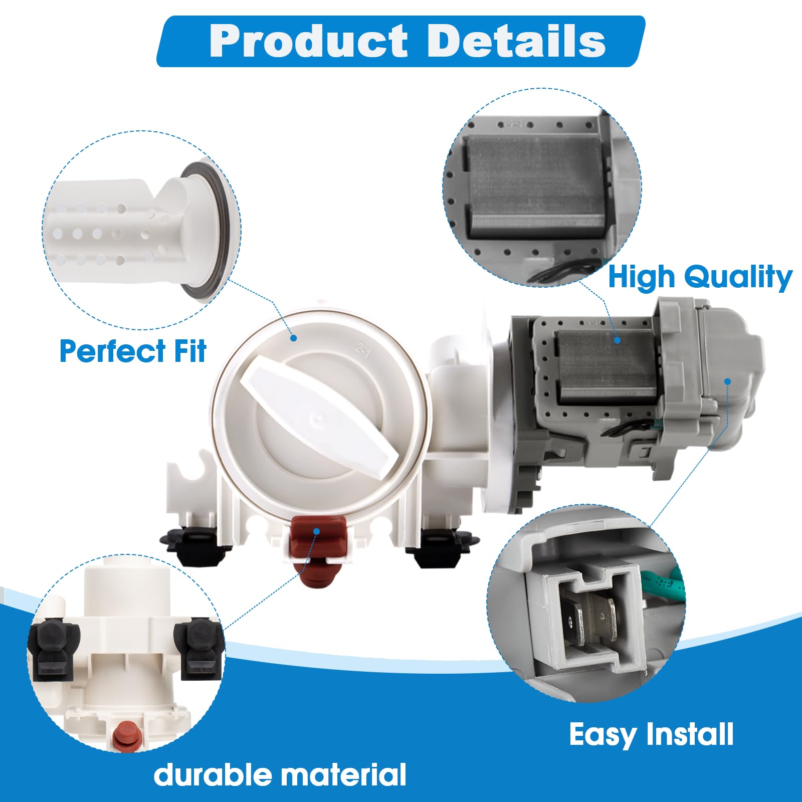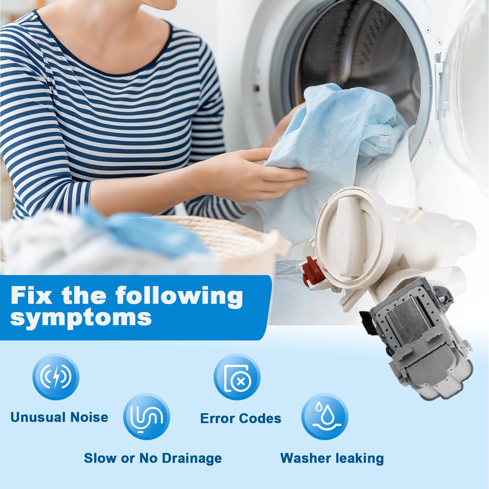 【High Quality】This 280187 8181684 Washer Drain Pump Filter is made of high-quality materials, it can effectively resolve not or slowly draining, error code, Pump overheating, unusual noises,pump damaged in your washer. It has been thoroughly tested to ensure long life and durability
