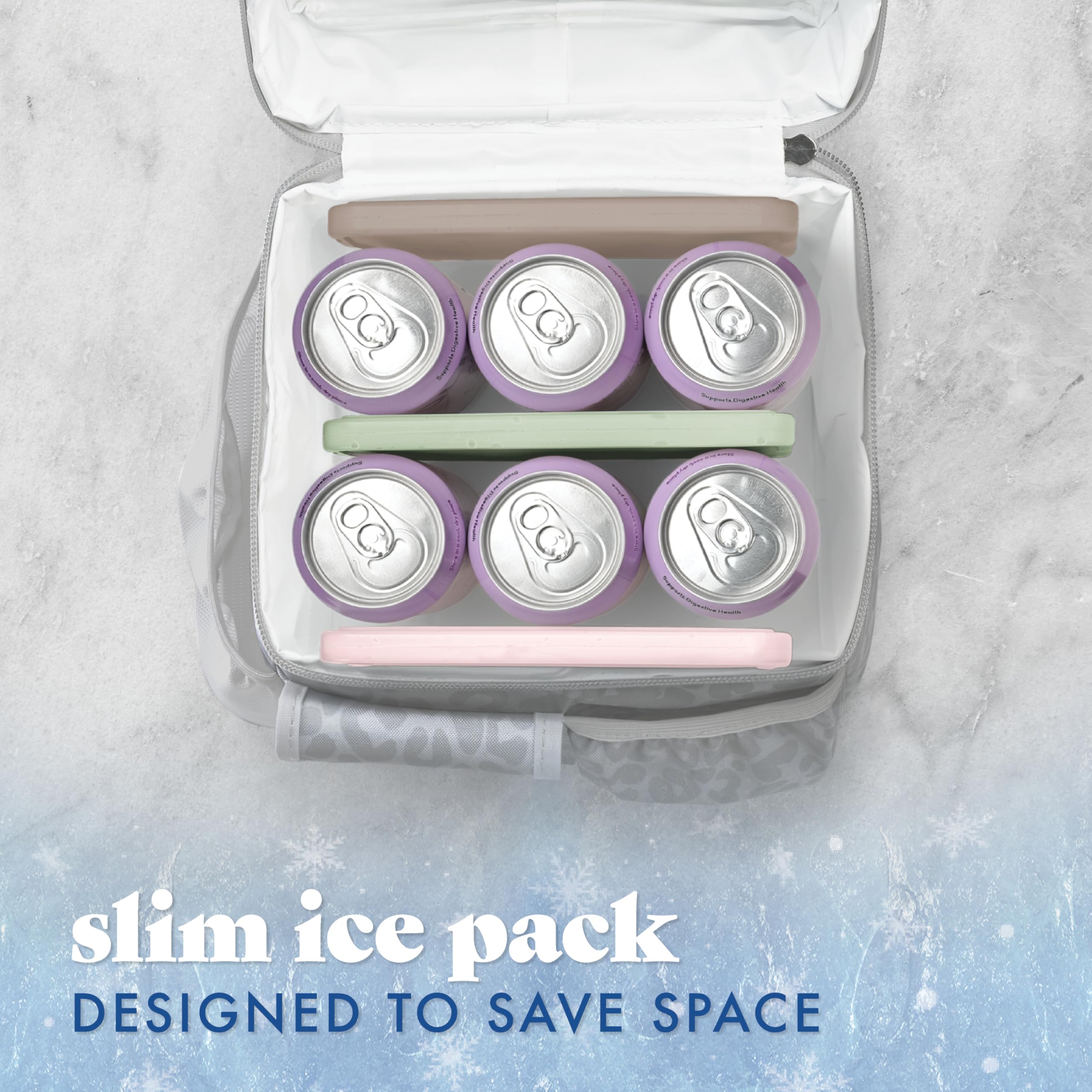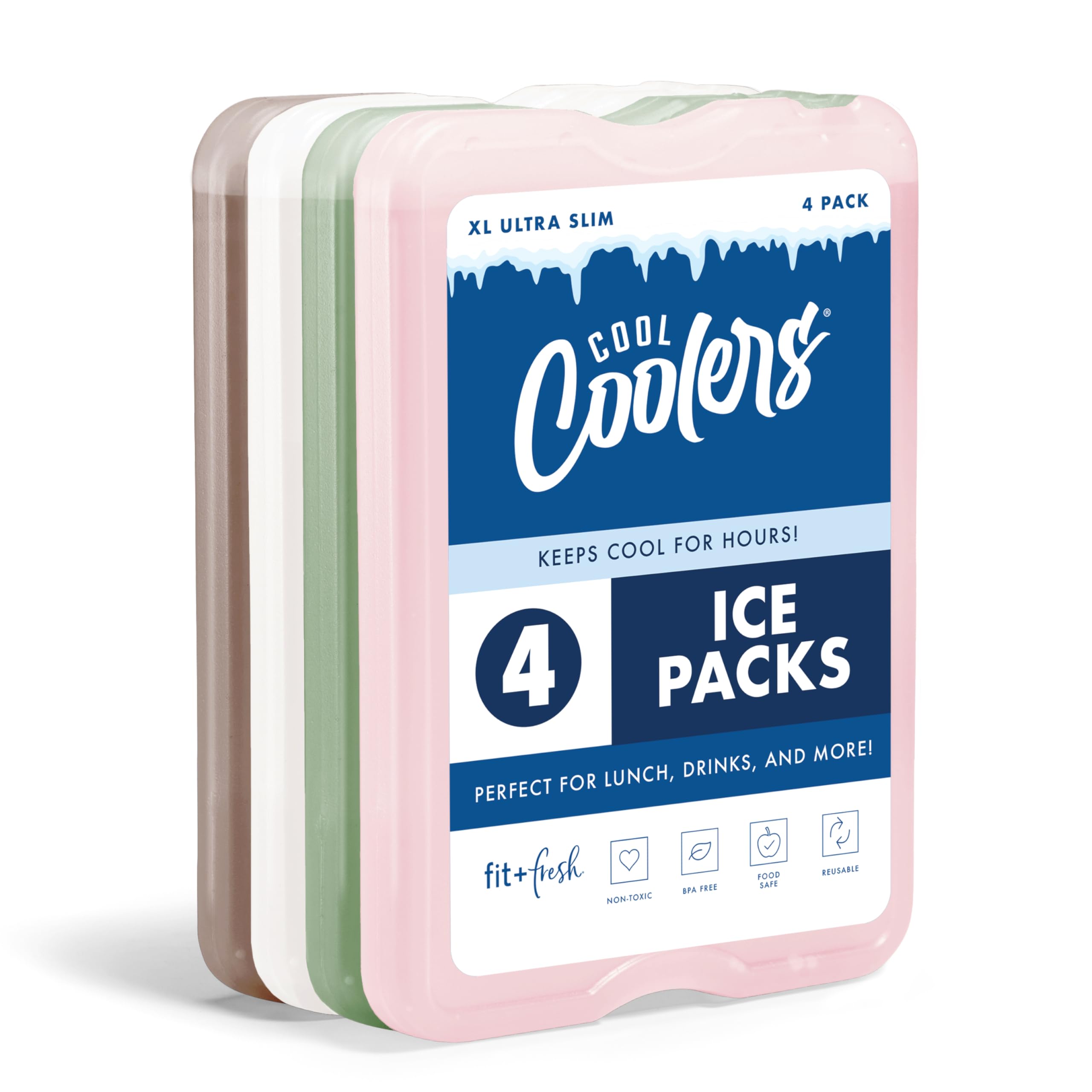 XL REUSABLE ICE PACK - Set includes 4 slim ice packs for lunch boxes. Sized at 4.75” x 0.5” x 7” their ultra-thin design slides easily into any bag for max chill without the bulk. Made in neutral colors to match our stylish fit & fresh lunch bags.