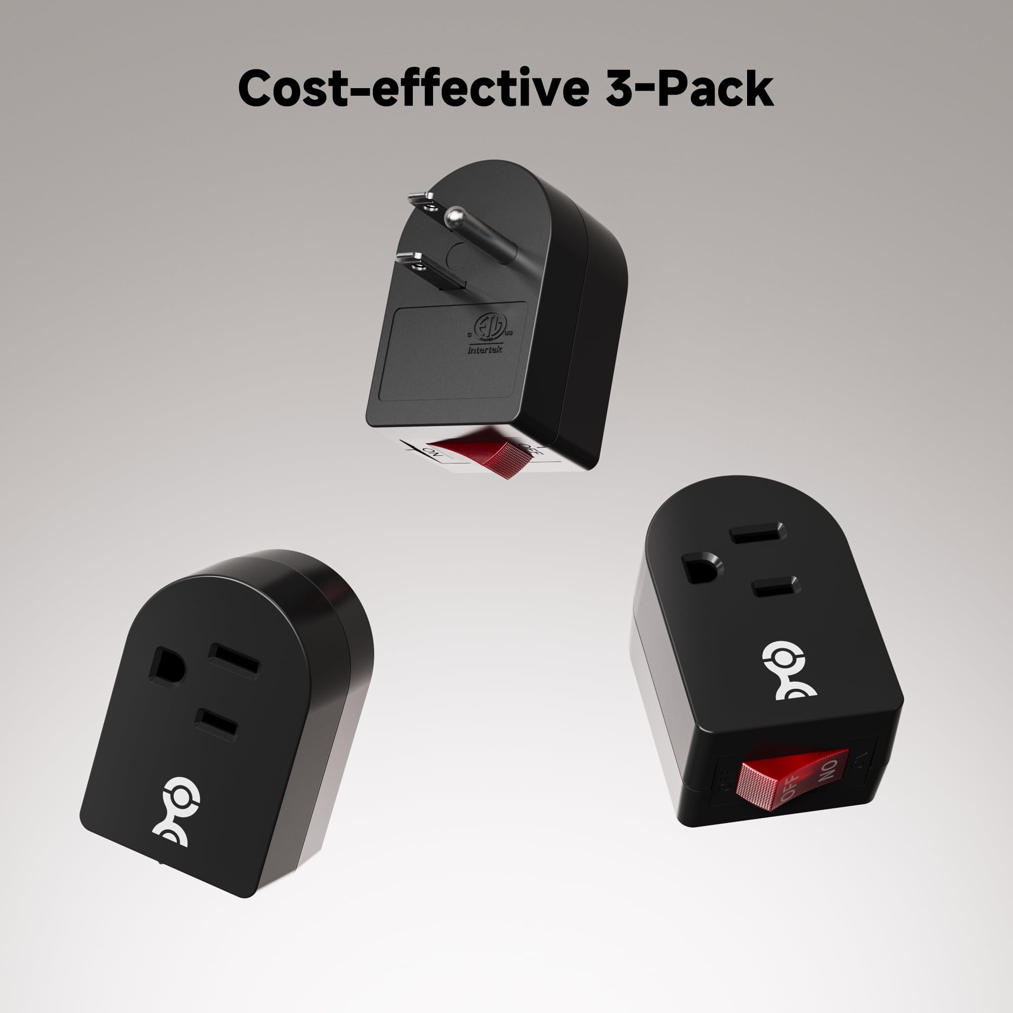 Cost-Effective 3-Pack: This pack includes three grounded outlet switches, perfect for multiple applications. Take one along when traveling to convert any standard outlet into a power switch. Each plug switch on/off is backed by a lifetime warranty for added peace of mind.