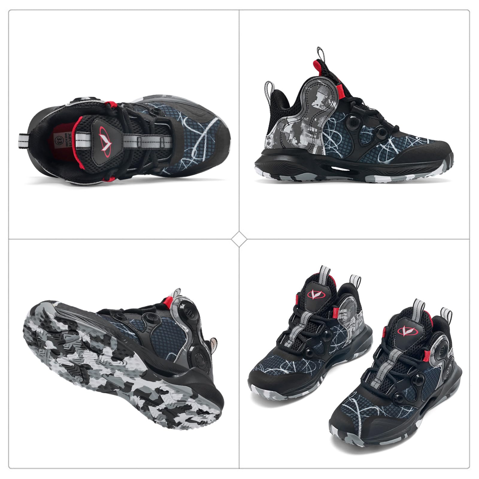 The basketball shoes for boys have the fashion designed synthetic upper and skin-friendly lining, they can make kids feet more comfortable and keep their feet dry all day.