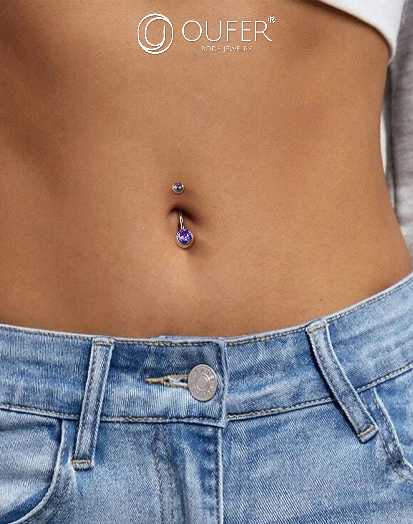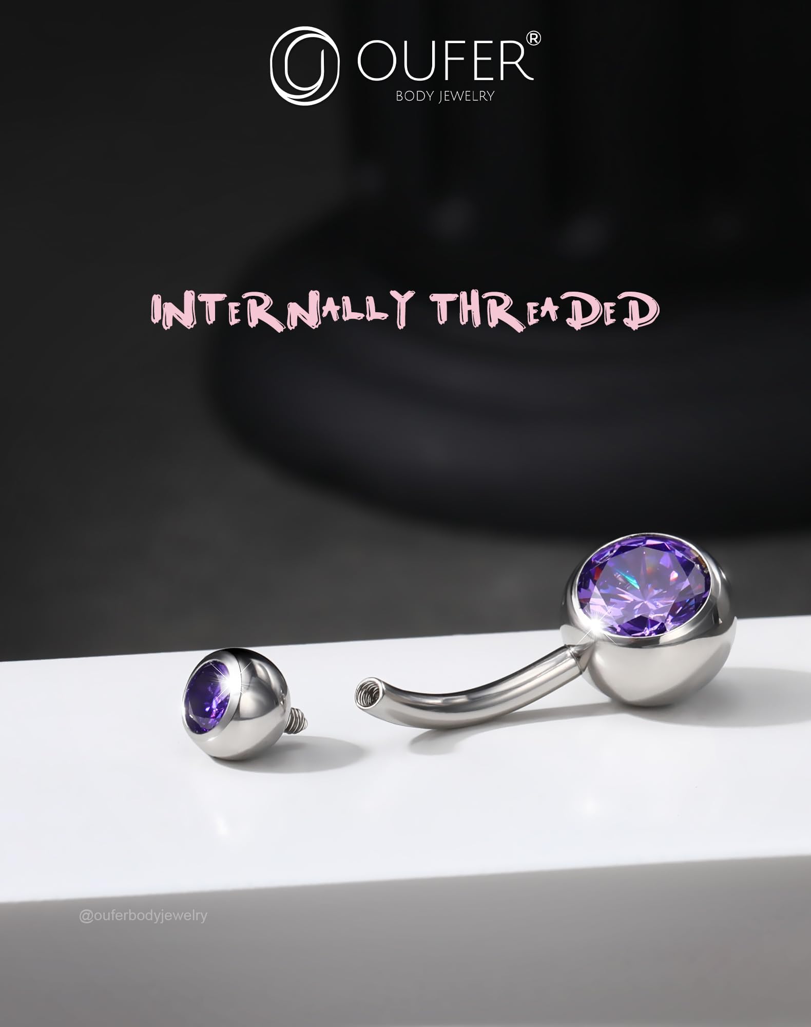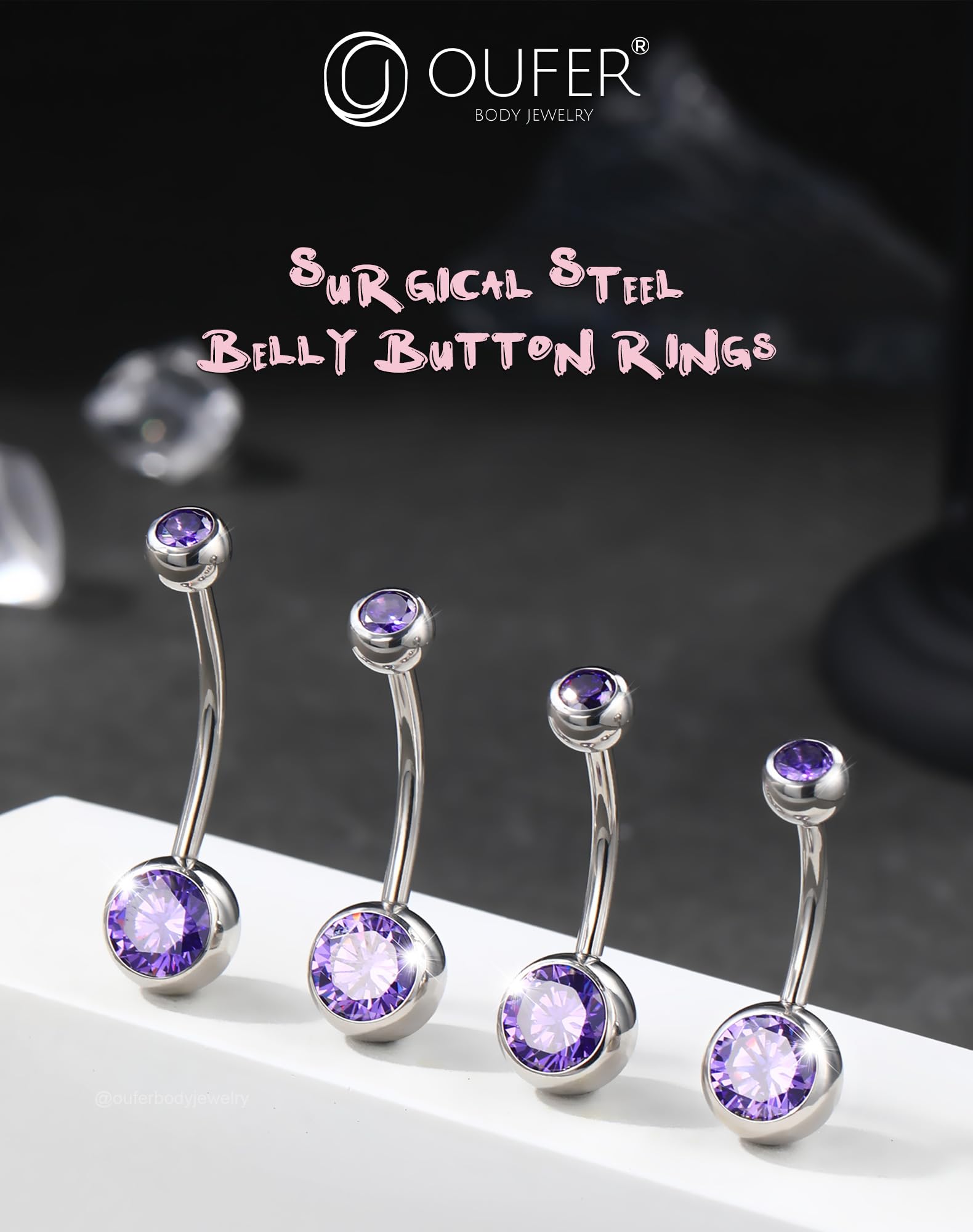 【Charming Belly Button Ring】1PC Internally Threaded 316L Surgical Steel Belly Button Ring with Fashion Purple Cubic Zircon, Simple and Generous