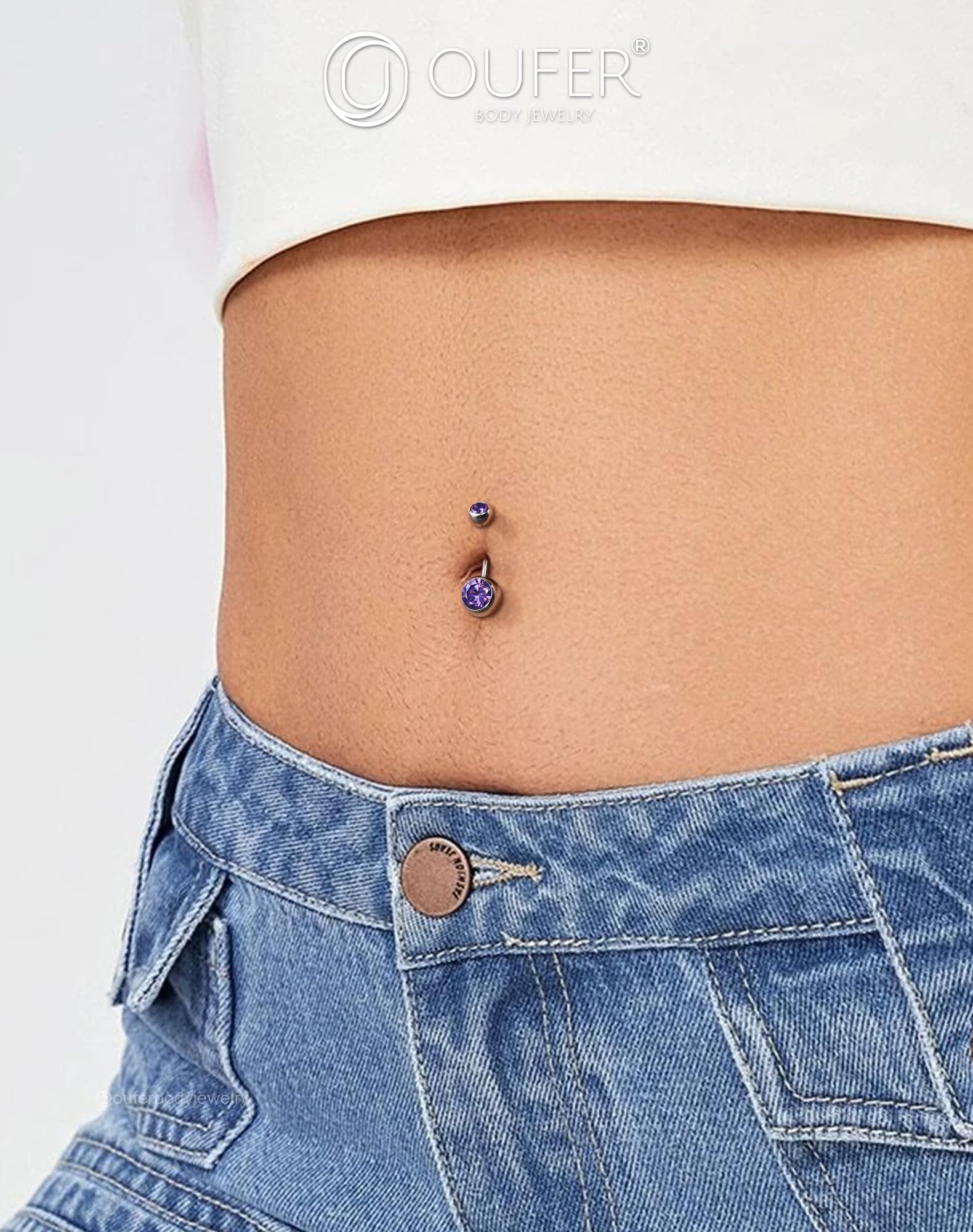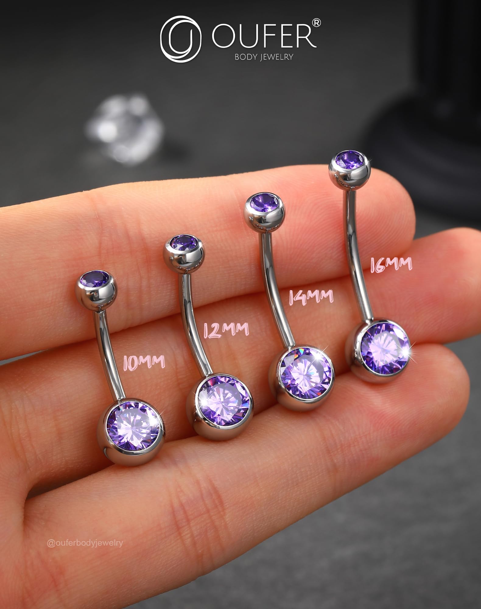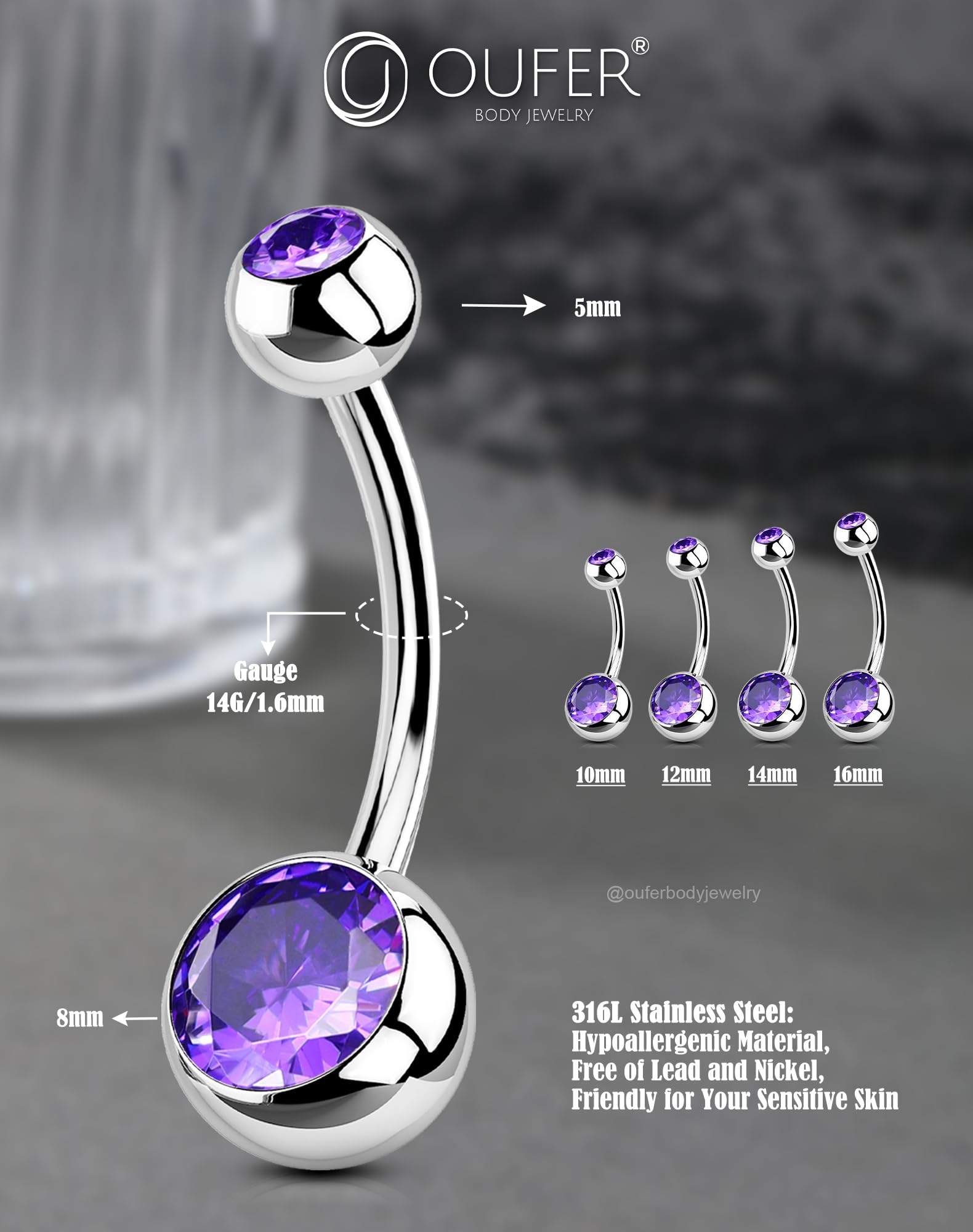 【Charming Belly Button Ring】1PC Internally Threaded 316L Surgical Steel Belly Button Ring with Fashion Purple Cubic Zircon, Simple and Generous