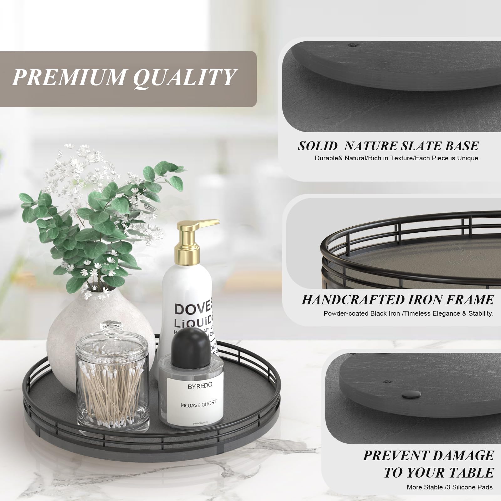 LUXURY & FUNCTIONAL DESIGN– The black slate tray combines natural stone texture with a modern black frame, making it an eye-catching slate lazy Susan for dining table and a stylish addition to any home decor.