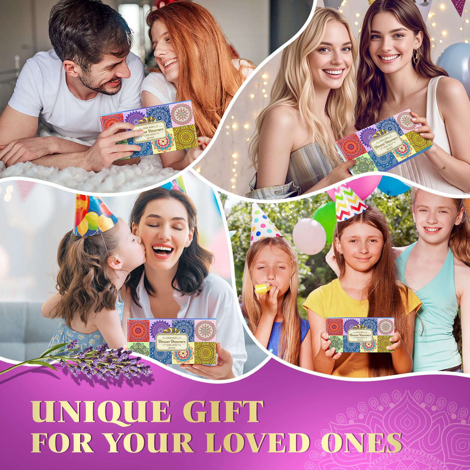 Aromatherapy Experience: Qivatex Shower Steamers provide a soothing aromatherapy experience, transforming your daily shower into a spa-like retreat. These steamers are perfect for relaxation and self-care, making them ideal gifts for women who love indulging in moments of tranquility.