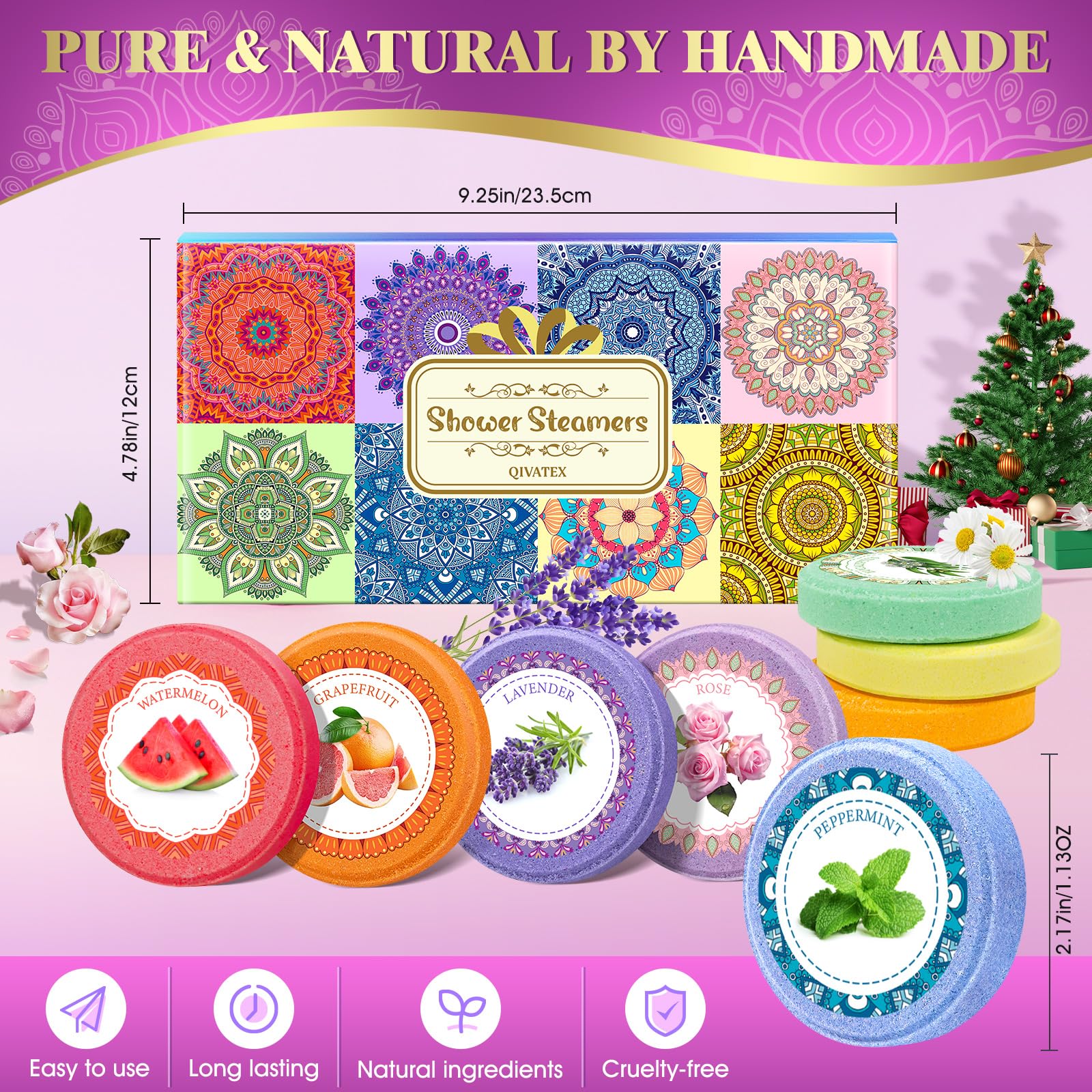 Variety of Scents: Choose from a range of captivating scents, each designed to cater to different moods and preferences. From calming lavender to invigorating citrus, (lavender, eucalyptus, peppermint, grapefruit, rose, lemon, watermelon, vanilla.) Qivatex Shower Steamers offer a versatile selection that suits every taste, making them suitable as gifts for teen girls, moms, and women of all ages.