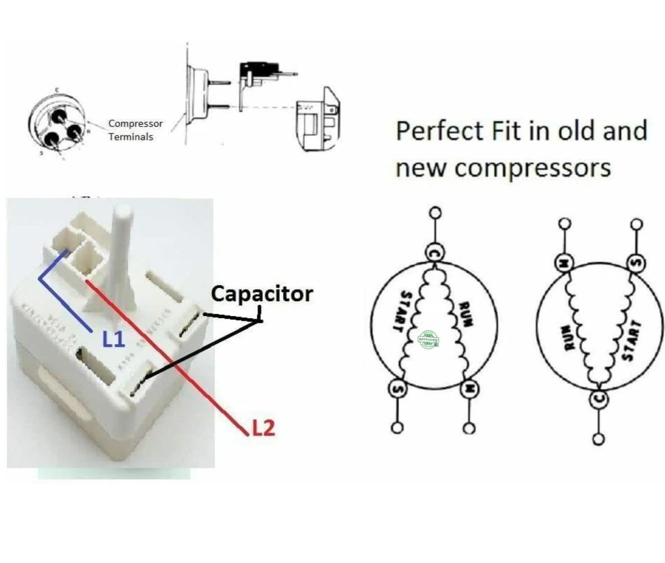 GSPUSA 225D1204P003 CKD4P003 X compatible with Embraco Refrigerator Compressor Start Relay 513604061 1143860U3 fits old number 225D1204P003 for old and new models and serials 50 and 60 hertz for models .