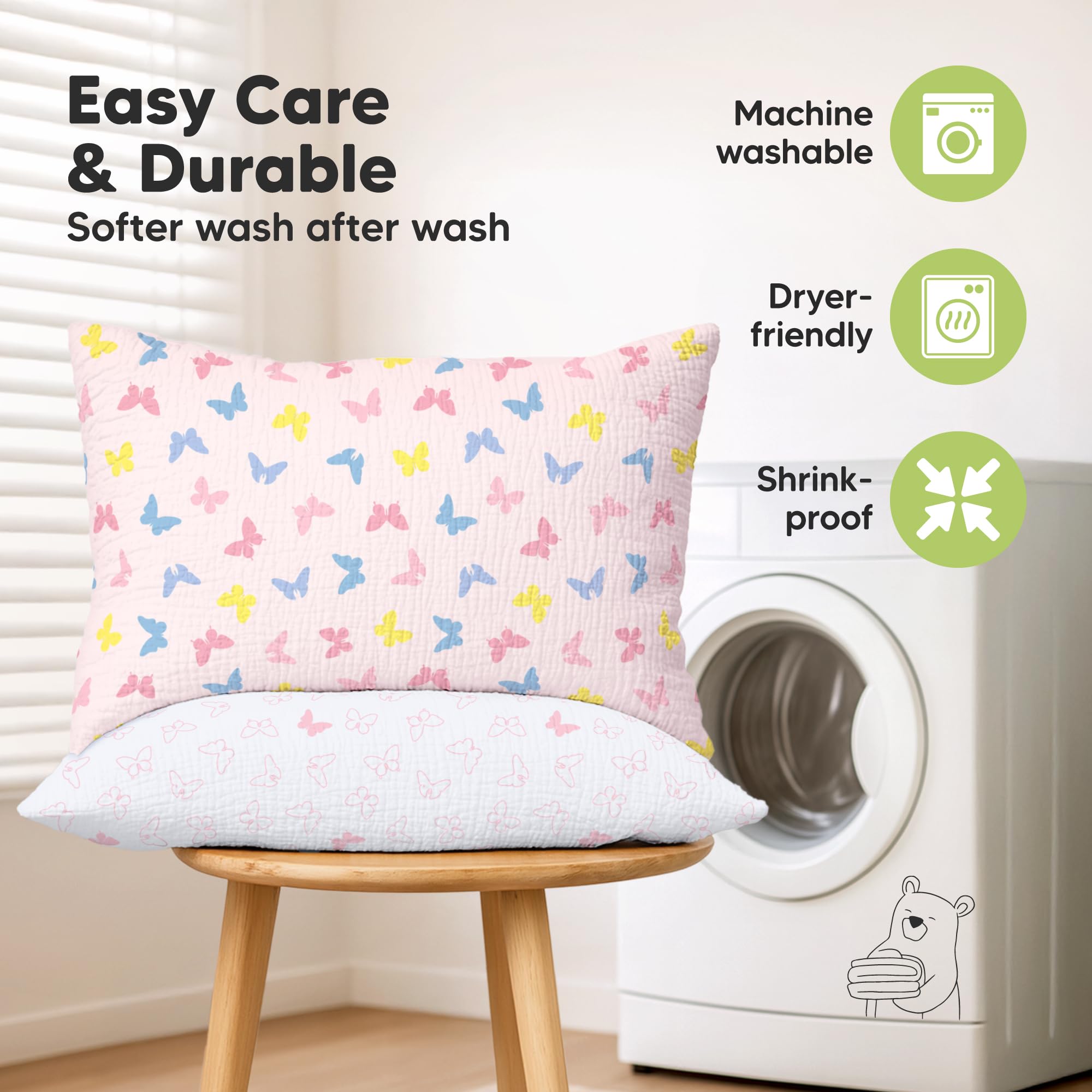 Durable & Washable – A washable pillowcase that becomes softer with every wash. Dryer-friendly and shrink-proof, KeaBabies Lyra Muslin Pillow Cover is a reliable small pillow case for everyday use. Comes with a tag for your child/kids' name.