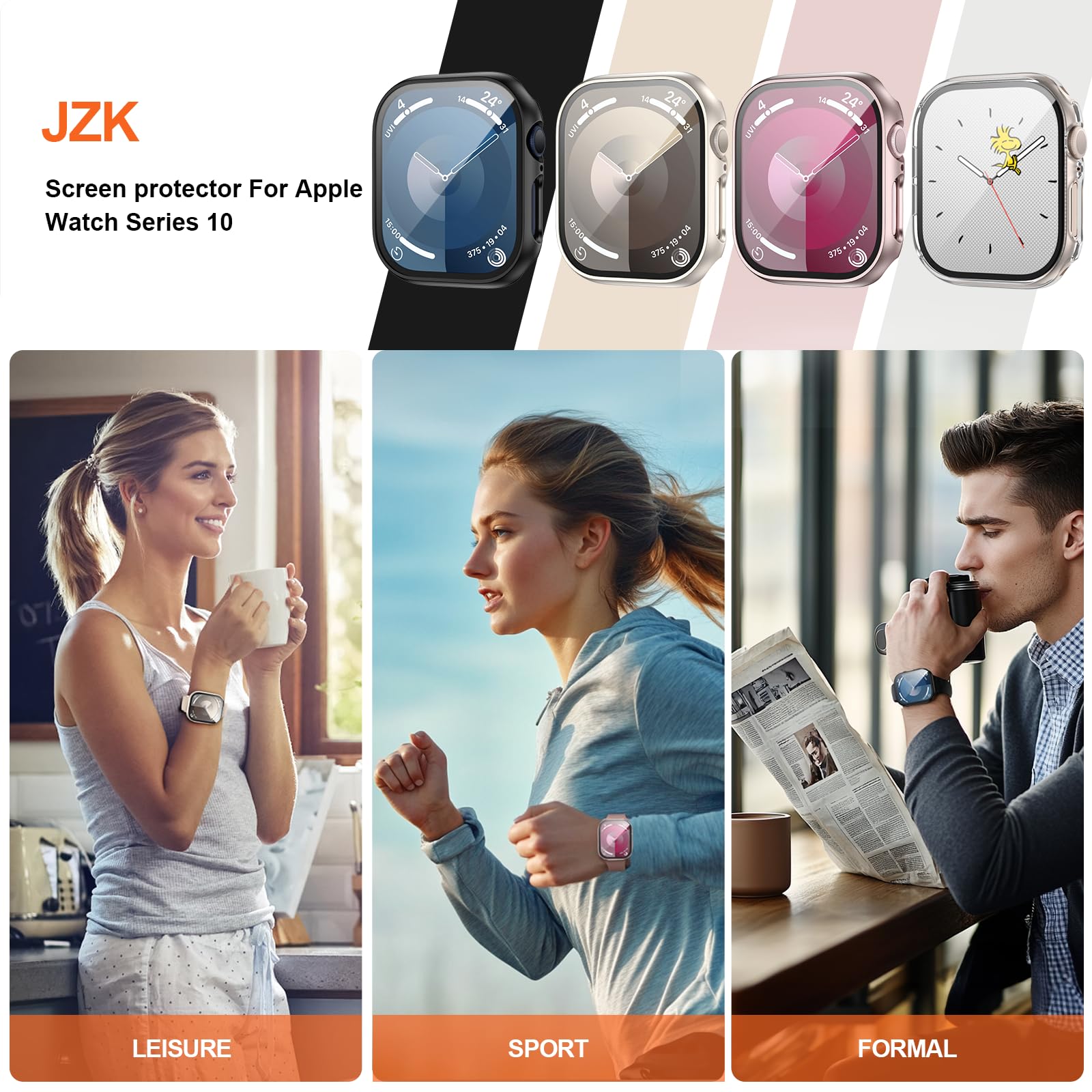 【2 In 1 Design】: Durable PC case built in slim HD clear tempered glass screen protector,all Around protects your Apple Watch 11/10 46 mm Smartwatch from scratch, bumps and accidental drops.Super easy to install for its snap-on design,and charge directly