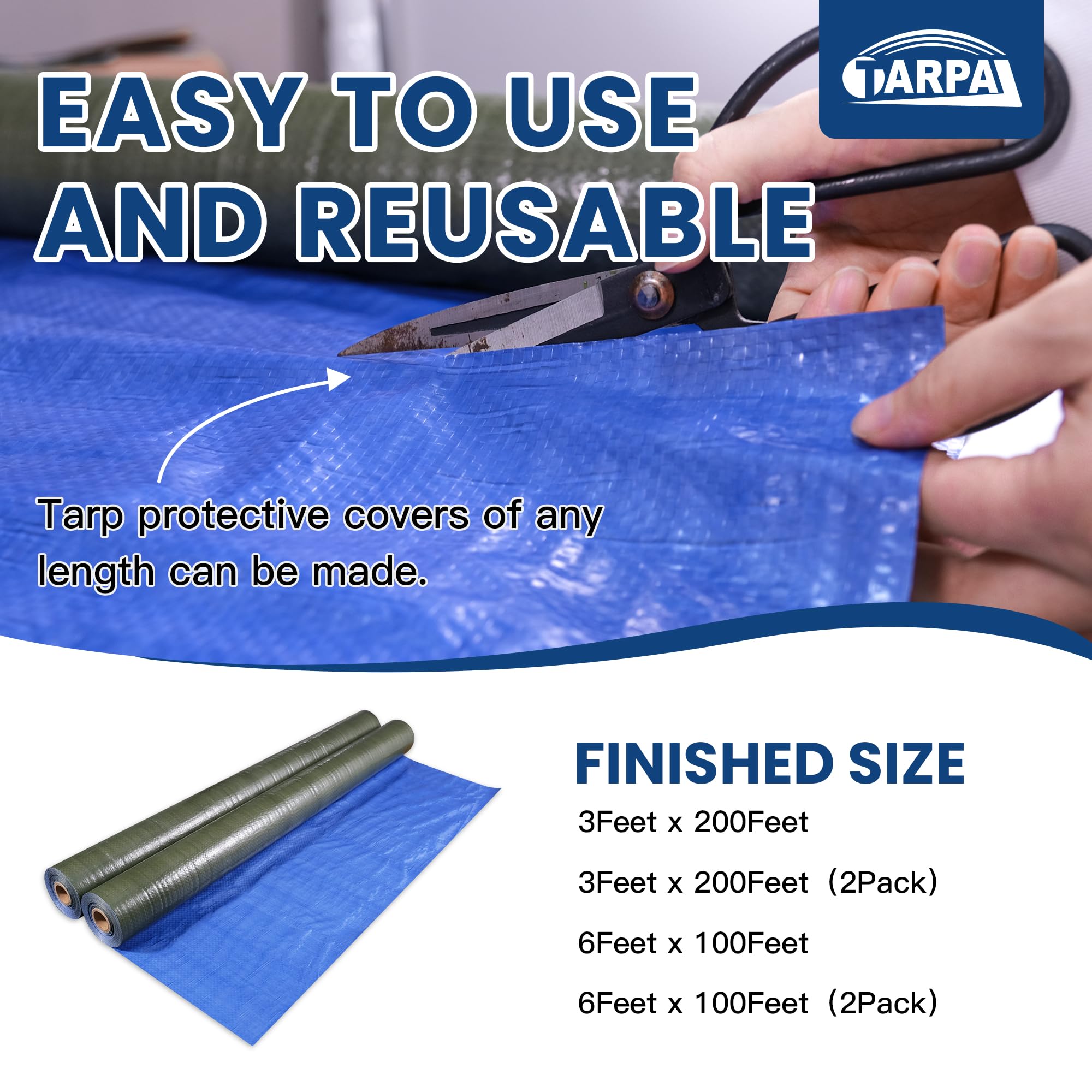 【 Easy to Use 】 Larger and longer rolls are suitable for larger projects. Green or blue Tarps waterproof protective covers of any length can be made
