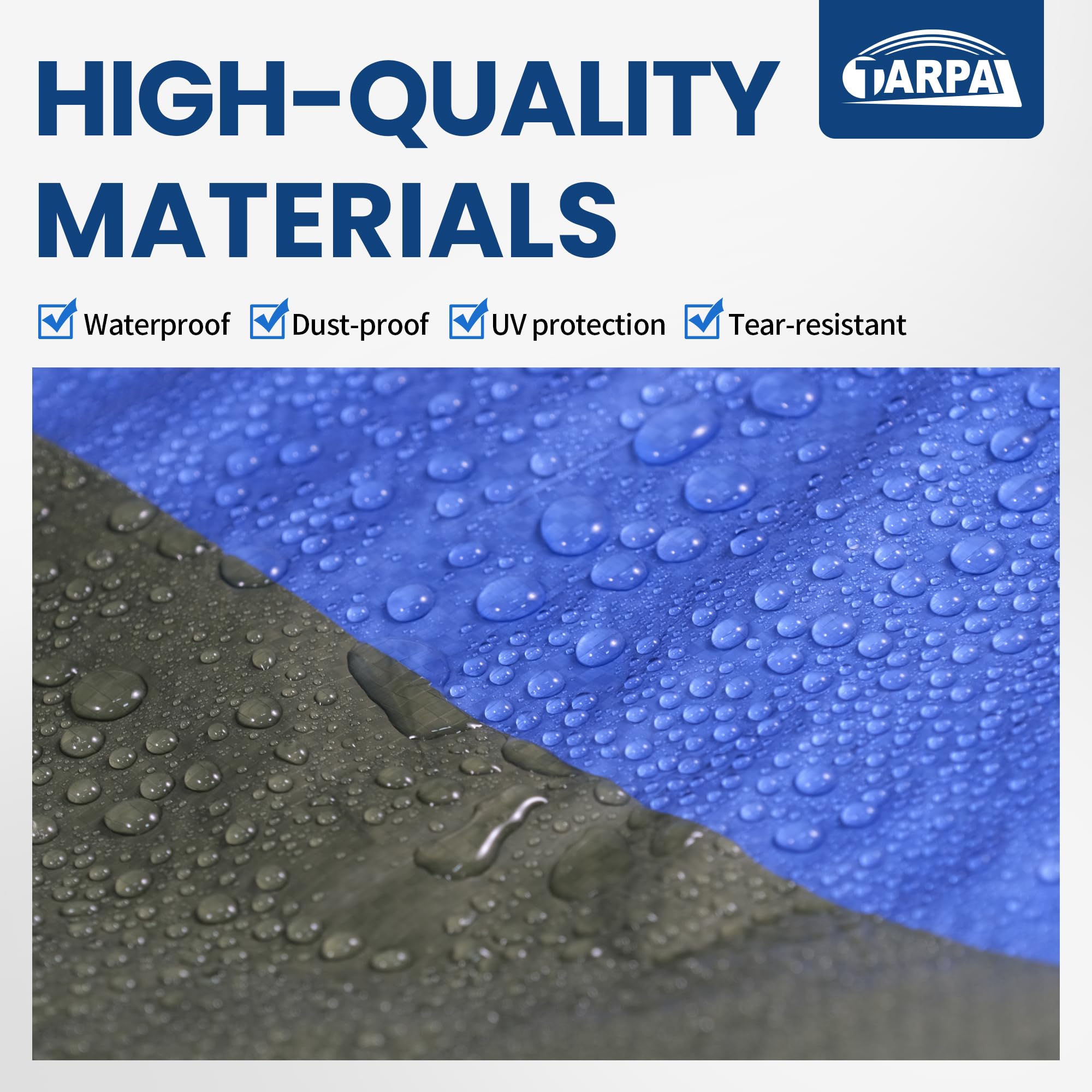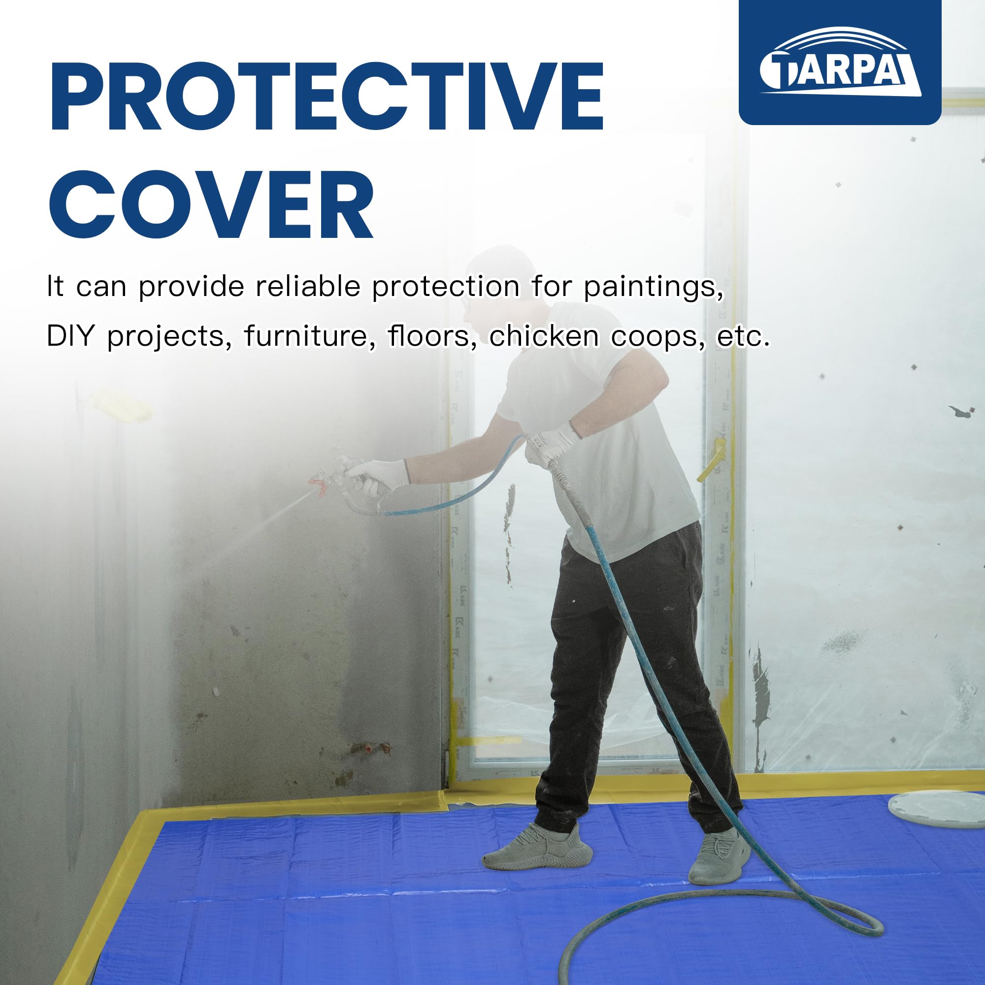 【Meet your use in various scenarios】 Tarps can not only serve as protective barriers for decoration, painting, carpets, floors, etc, but also provide reliable protection for DIY projects, windproof Windows, chicken coops, wood, and moisture-proof layers. Our rainproof tarps have everything you need