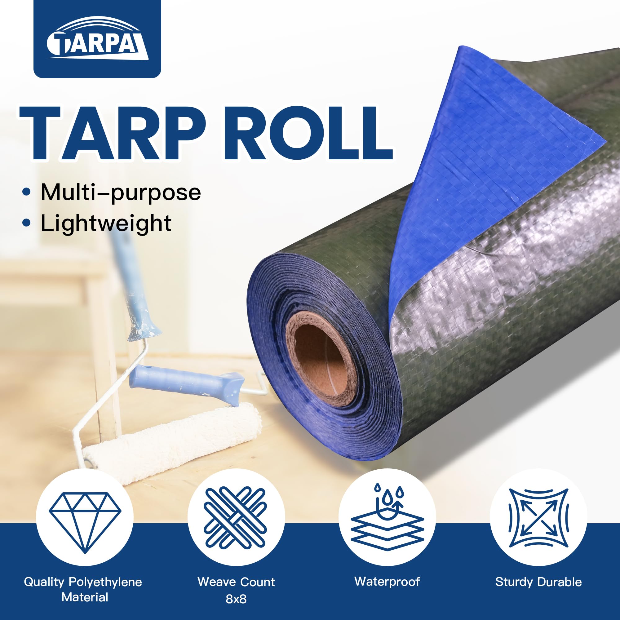 【600 Square Feet Tarp Roll 】6'x 100' lightweight reusable tarps, waterproof tarp rolled onto carbon fiber core tube. Our tarpaulin can be used on both sides, one side is green, the other side is blue, you can choose the appropriate color according to your needs