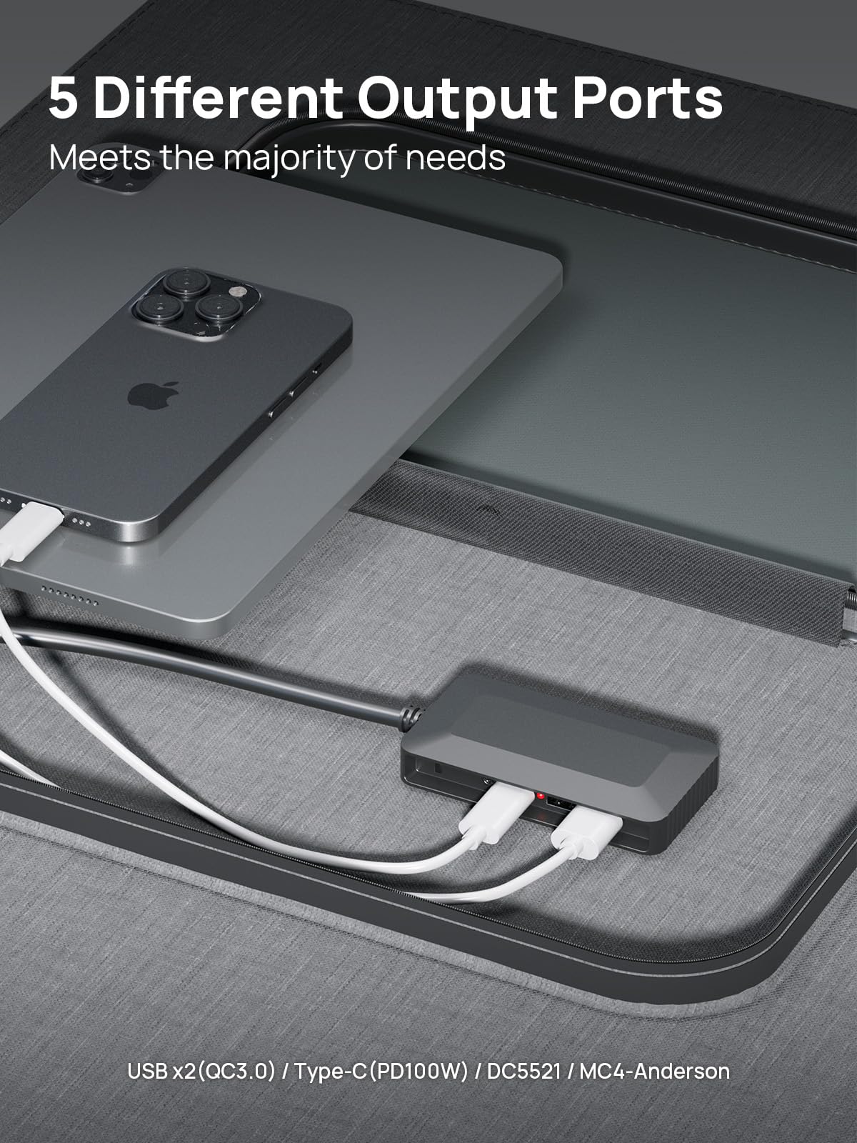 【High-Performance Solar Panel】It adopts industrial-grade monocrystalline silicon with a maximum sunlight conversion efficiency of 23%. The ETFE high-transparency encapsulation film has excellent light transmittance, is wear-resistant and lightweight, and the overall weight is only 19.9 pounds.