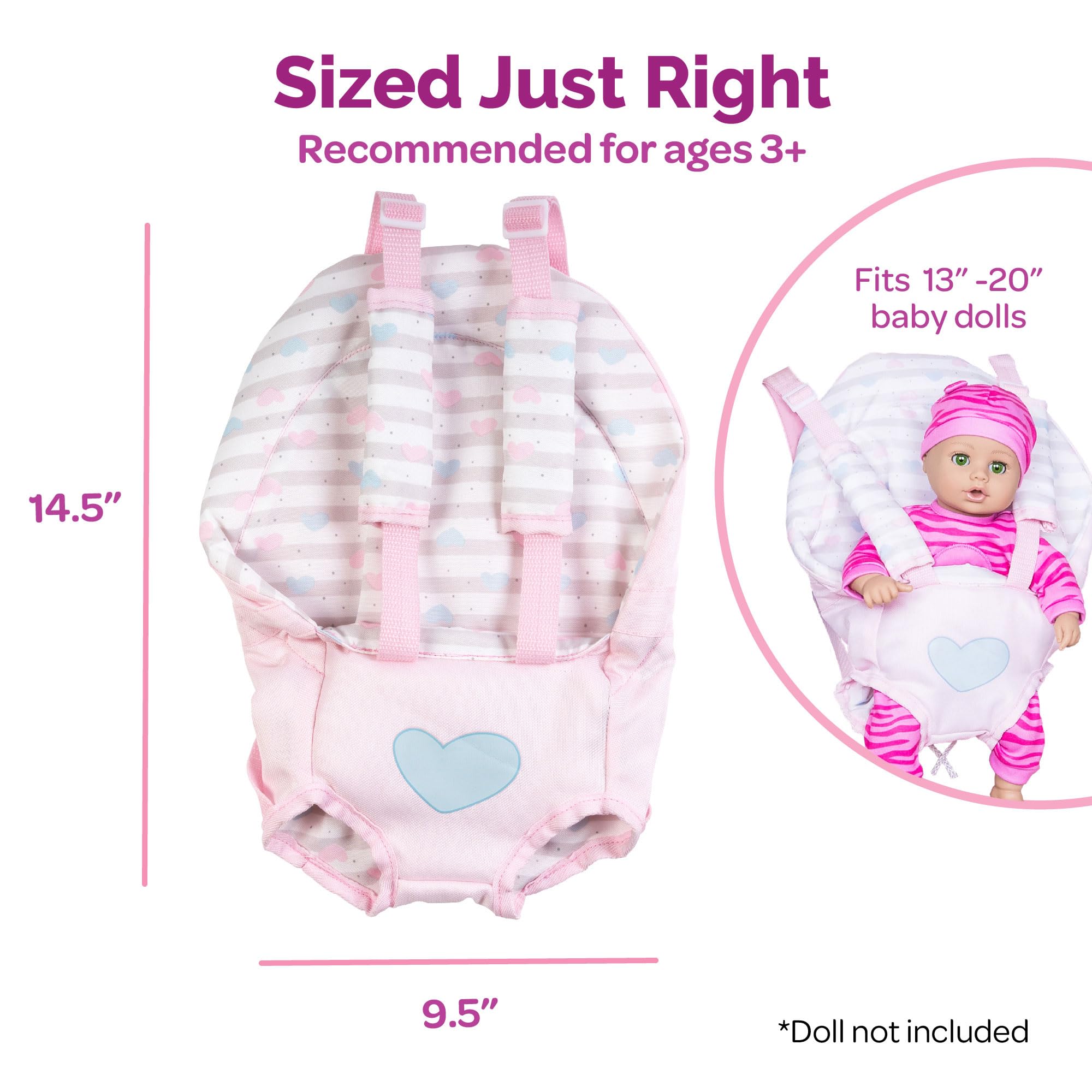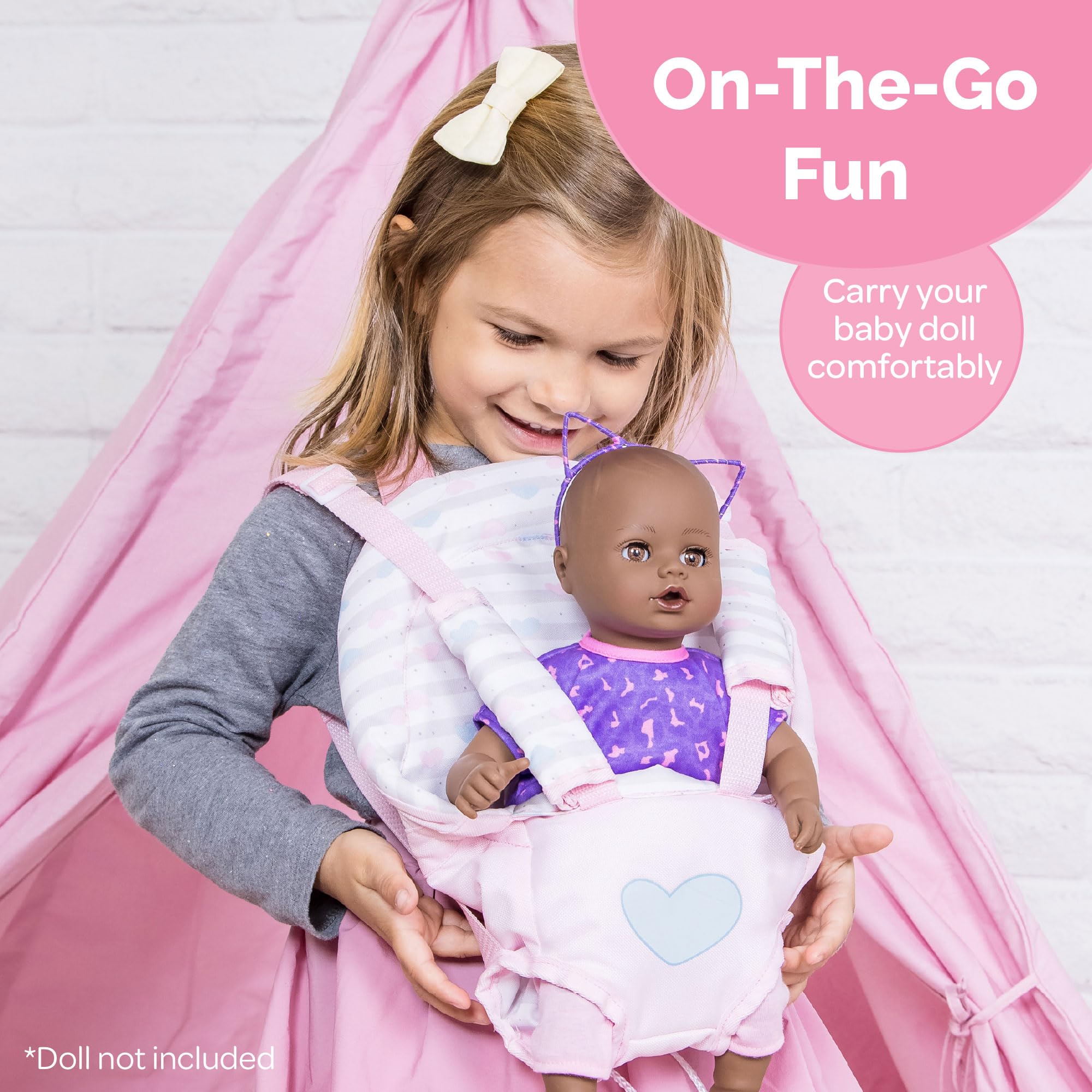 Snuggle closer with Adora Classic Pastel Pink Baby Carrier Snuggle. This ADORAble toy accessory is part of our Classic Pastel PlayDate Accessory and will keep your favorite 13-20” baby dolls close to your heart wherever you go.