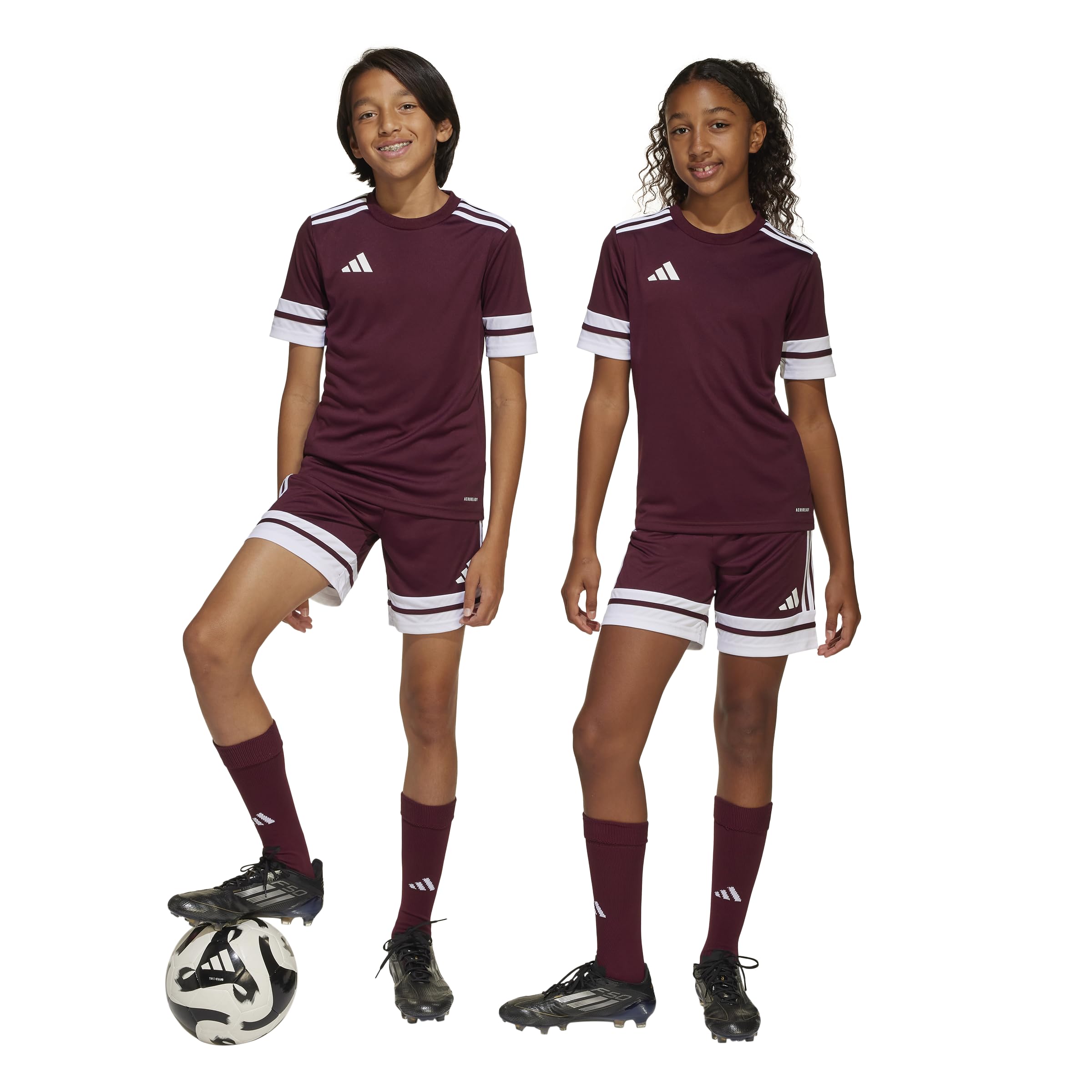 Description Look and play like a team in these juniors' soccer shorts from adidas. Adjust the drawcord at the waist for the perfect fit. Moisture-absorbing AEROREADY will keep you dry and focused through every arrowing strike. Wear them with the Squadra 25 jersey for a professional look.