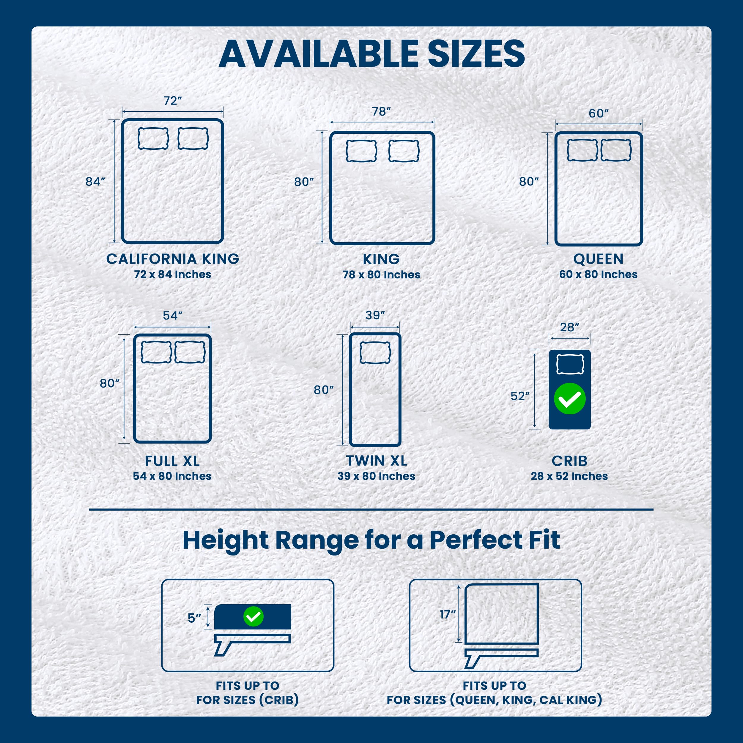 Mattress Protector - Fits Crib size mattress perfectly with dimensions 28 inches by 52 inches by 5 inches, featuring professionally turned hems and deep fitted pockets
