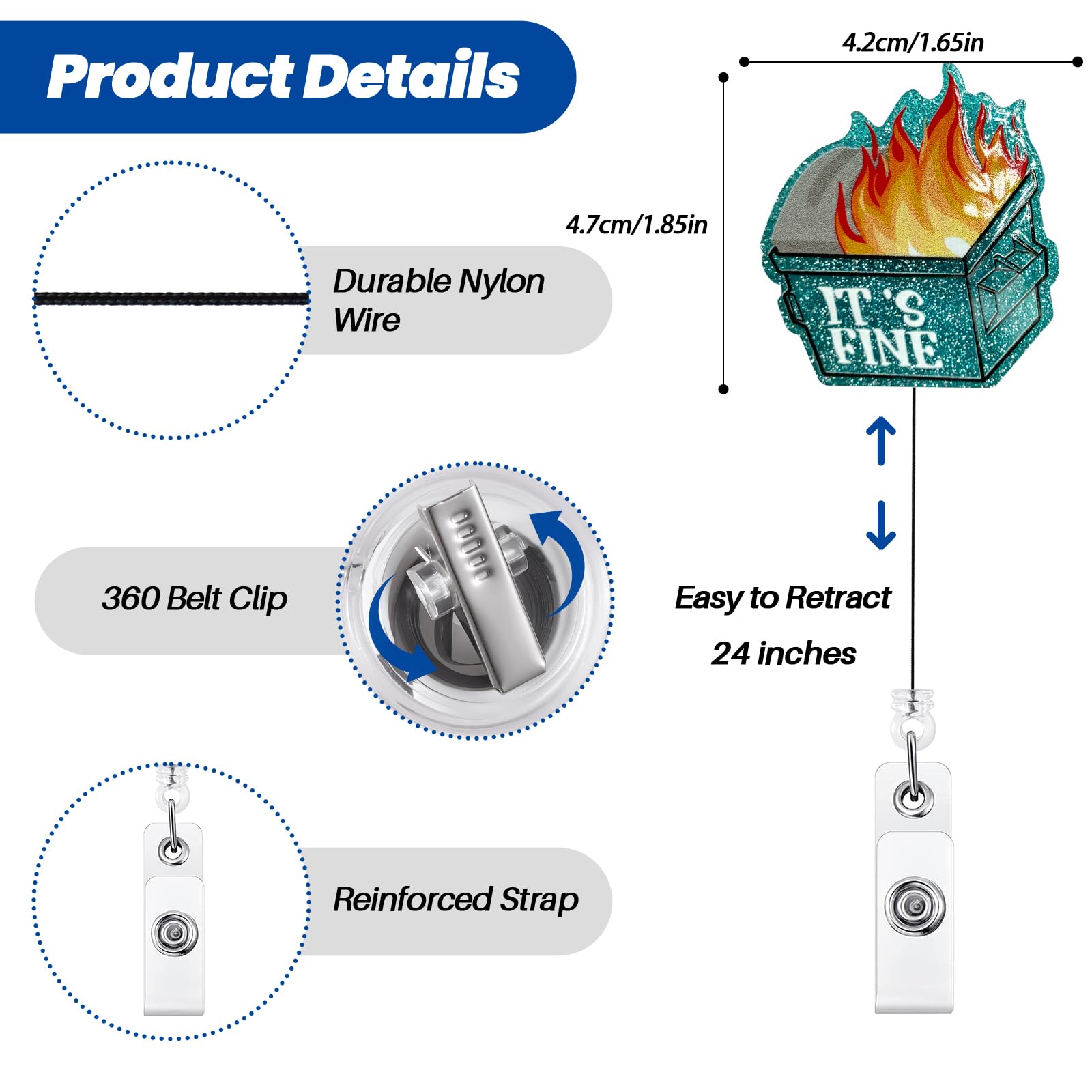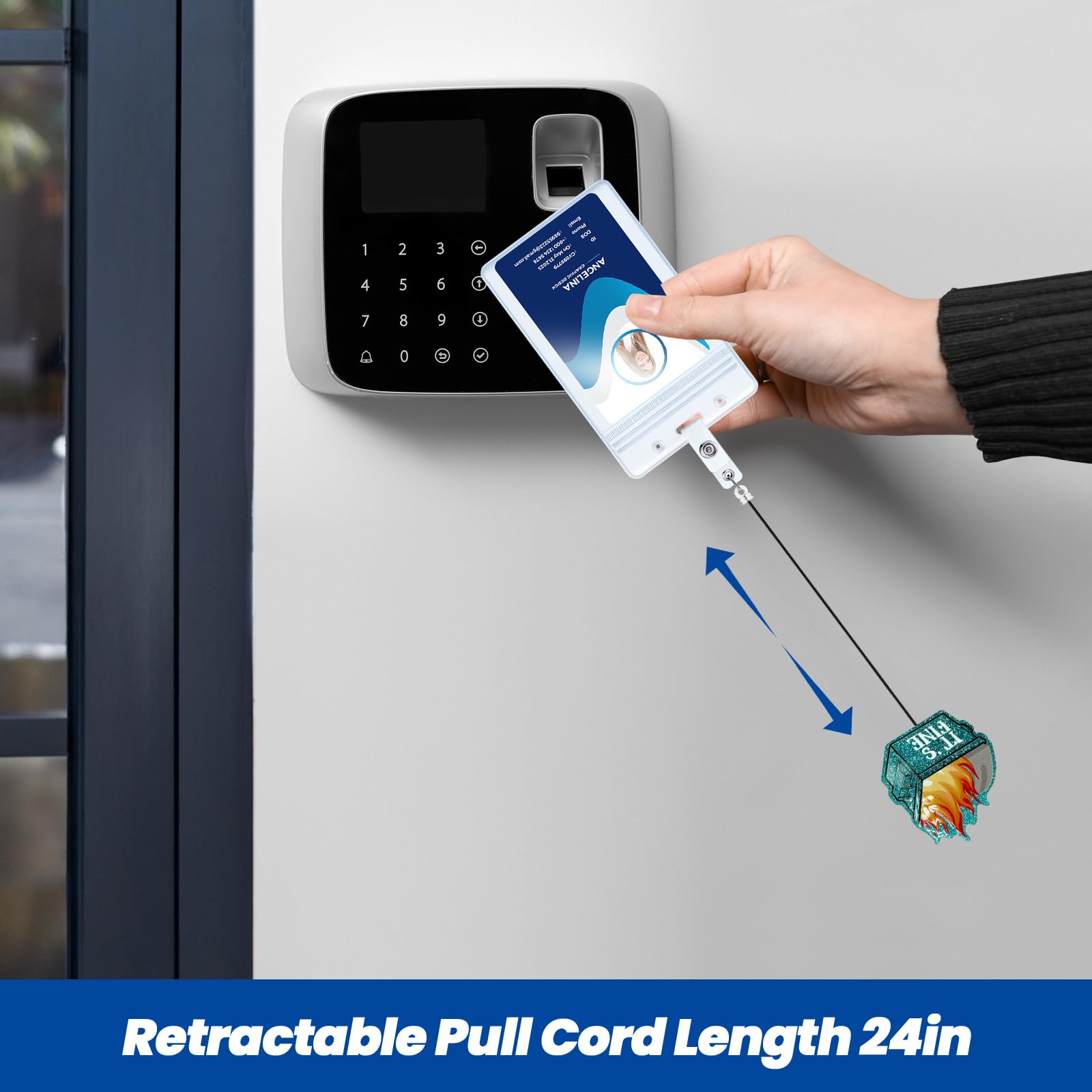 Retractable Cord: The retractable reel cord extends a maximum of 24 inches, more than enough to reach comfortably as far as your arm can reach. The flexible retractable feature enables you to effortlessly display your badge without removing it, enhancing your efficiency at work.