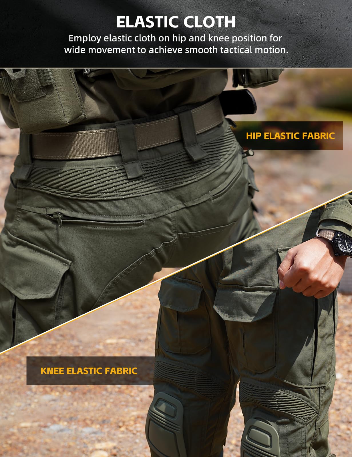 NEW VERSION: Made of new 50% and 50% polyester with a 4-way stretch-woven accents ripstop clothing , Teflon coating, YKK zipper, military level elastic and thread, STRONG and GOOD PERFORMANCE stretchable clothing around knee and hip and crotch, which makes it very comfortable and durable.