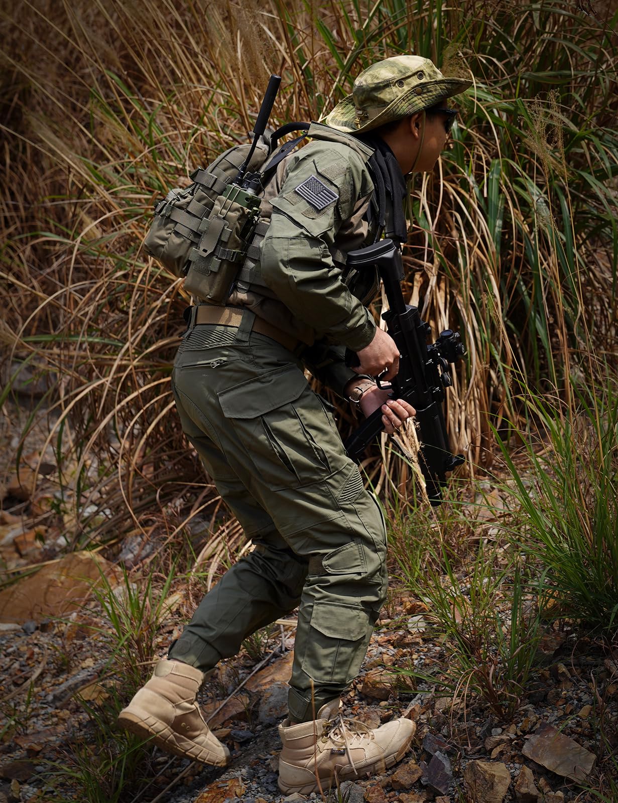 A PROFESSIONAL ARMY COMBAT PANTS: a) Come with a set of removable combat knee pads, when not using knee pads, just install the Built-in flap covers kneecap. b) Unique low-profile waist adjust system and knee pad height adjust system makes it very functional. And also with size adjustment at the back of waist, knee and ankle position.