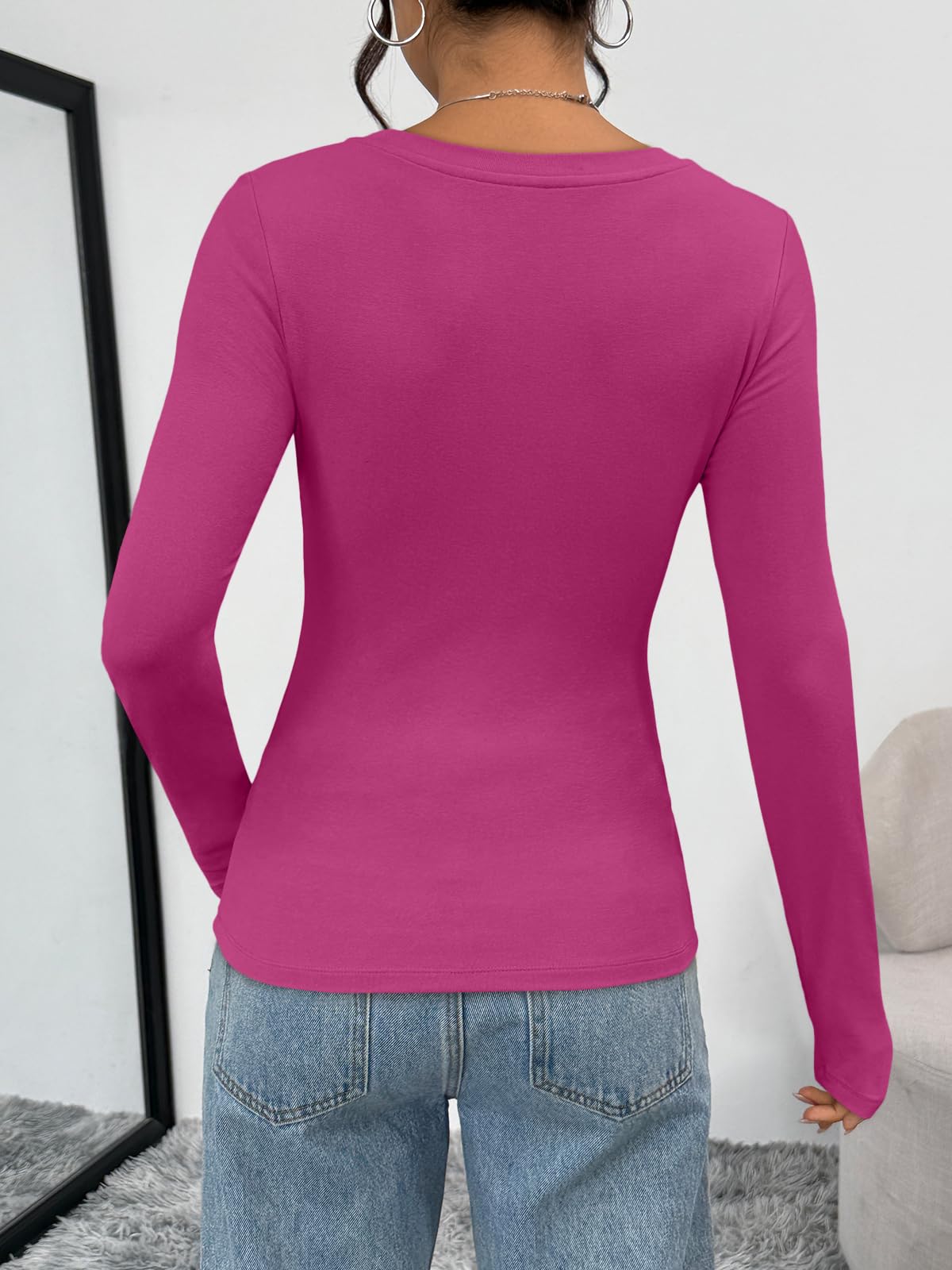 Soft Material - Womens long sleeve T-shirt is made of 92% polyester,8% spandex. Llight weight, super soft and high-stretch fabric with a second-skin fee