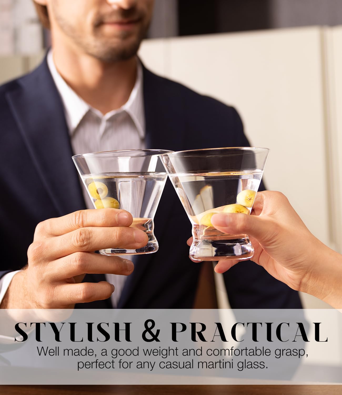 Sturdy Heavy Base: Stemless martini glasses feature a thick and balanced base. So much sturdier than traditional martini glasses, cocktail glasses and fits a drink perfectly. Special for those who need more stability when they’re drinking a cocktail. Just toast to your heart’s content! Whether you're enjoying a quiet evening in or hosting a lavish party