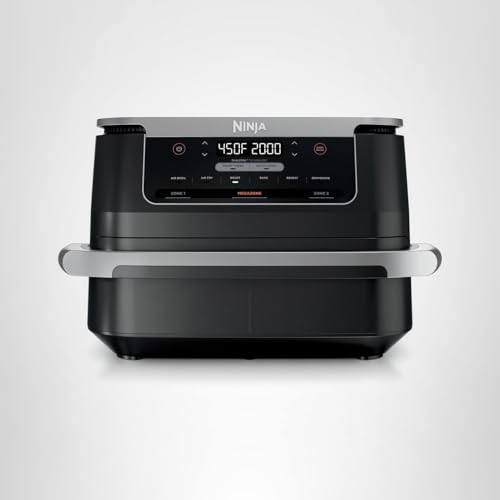 Meet the Ninja Foodi DualZone FlexBasket Air Fryer with 7-qt MegaZone. With the MegaZone, you can now cook larger proteins or entire meals that feed your whole family all in one basket. Insert the basket divider to cook with two 3.5 qt baskets or remove it to cook in 1 MegaZone for full 7-qt capacity. Eliminate back-to-back cooking with Dual Zone Technology. Use Smart Finish to cook 2 foods, 2 ways that finish cooking at the same time, or sync the settings across both zones with Match Cook. Plus, it features 6 cooking functions (air fry, air broil, roast, bake, reheat, dehydrate) so no matter what youβre craving, you can make it all in this 7 qt air fryer. Then, when youβre done cooking, cleanup is a breeze with nonstick and dishwasher safe crisper plates and basket.