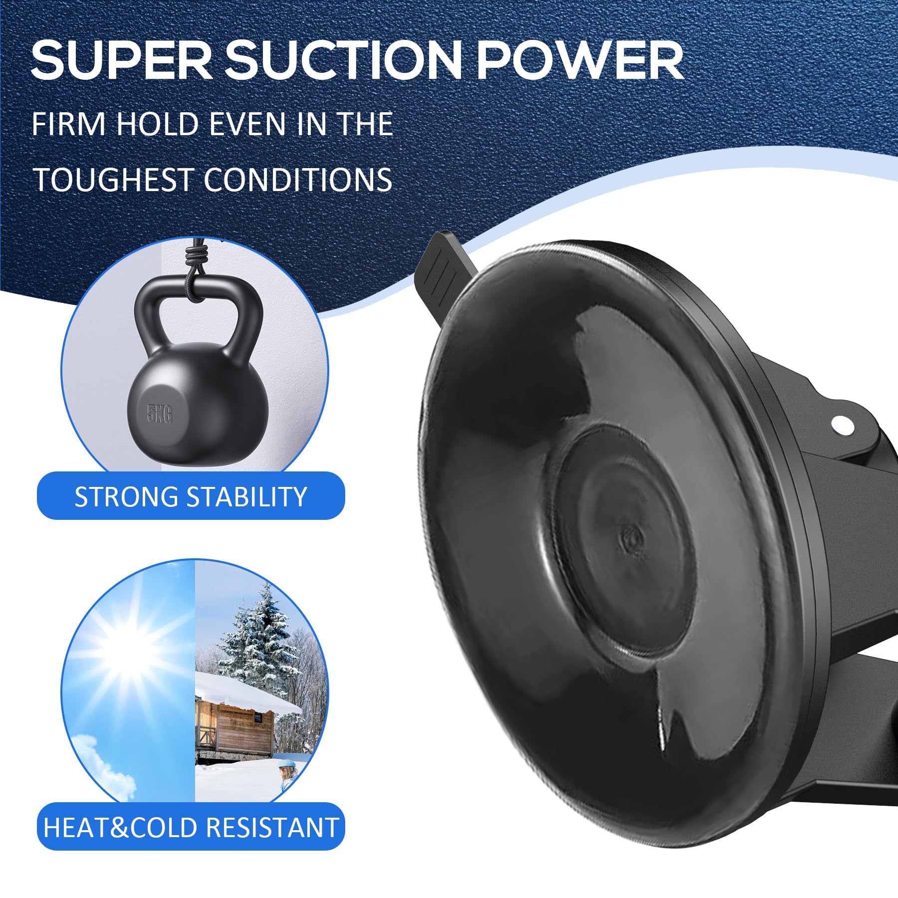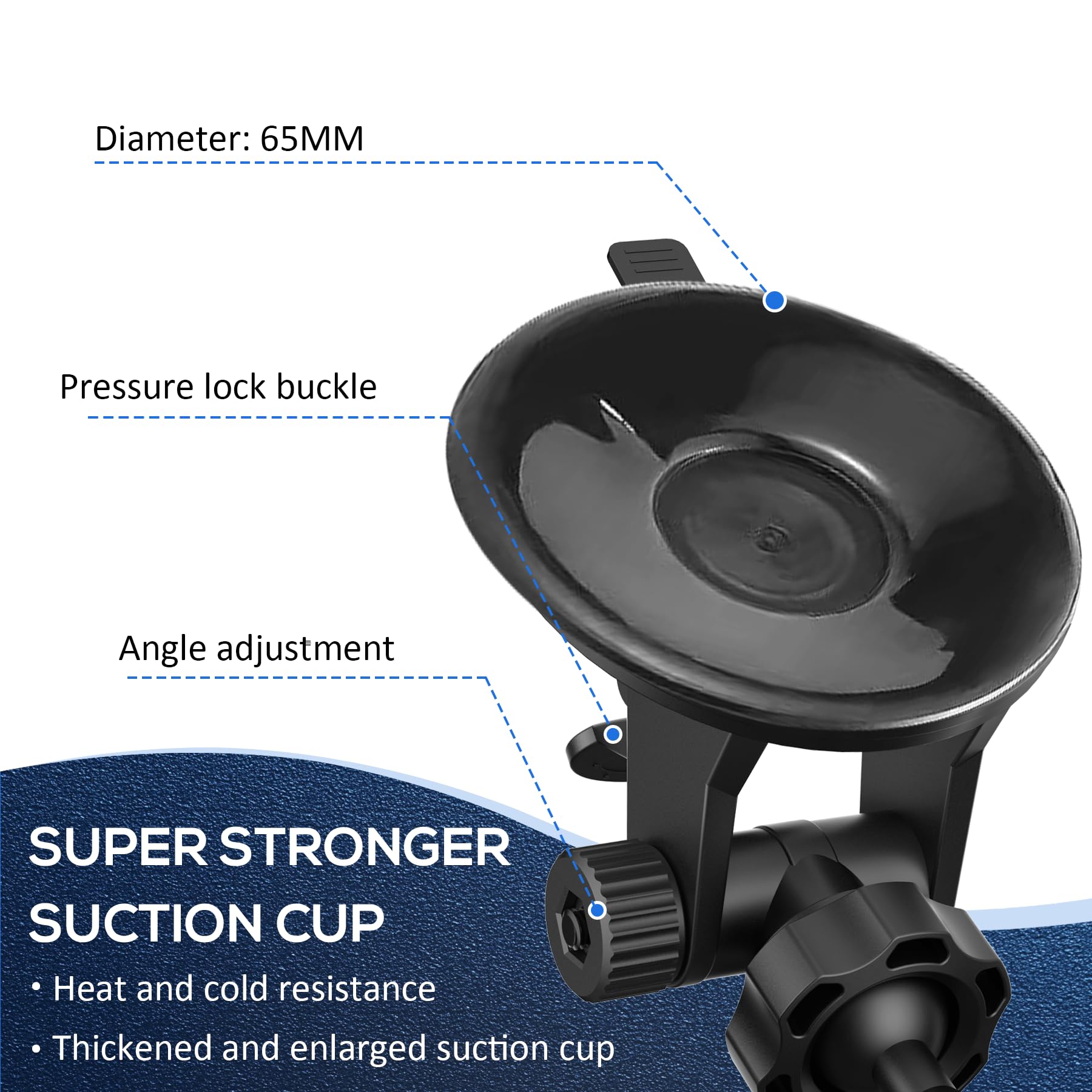 Enhanced suction cup,with a larger base and stronger suction,it is not afraid of extreme heat and cold,and can firmly adhere to the windshield