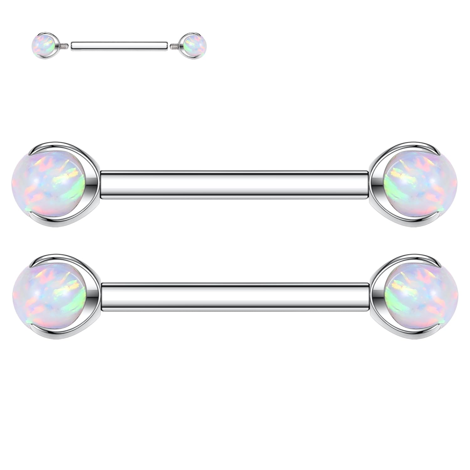 Attractive Style: The nipple ring with shiny bullet opal on both side,what's more both side can be internally threaded ,make your piercing more attractive