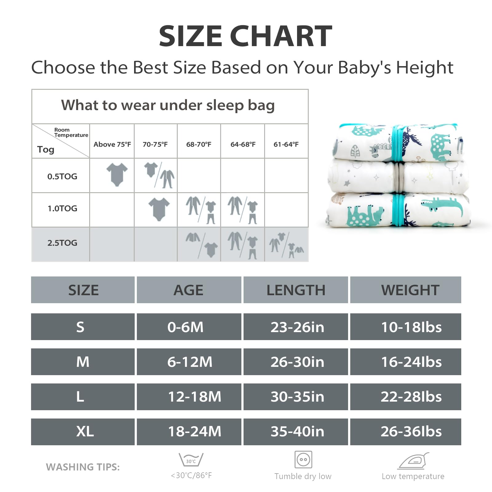 【SIZES AVAILABLE】S:0-6Months/10-18lbs; M:6-12 Months/16-24lbs; L: 12-18 Months/22-28lbs; XL: 18-24 Months/26-36lbs Machine wash with like colors,Tumble dry at low temperatures(<30°C/ 86°F).