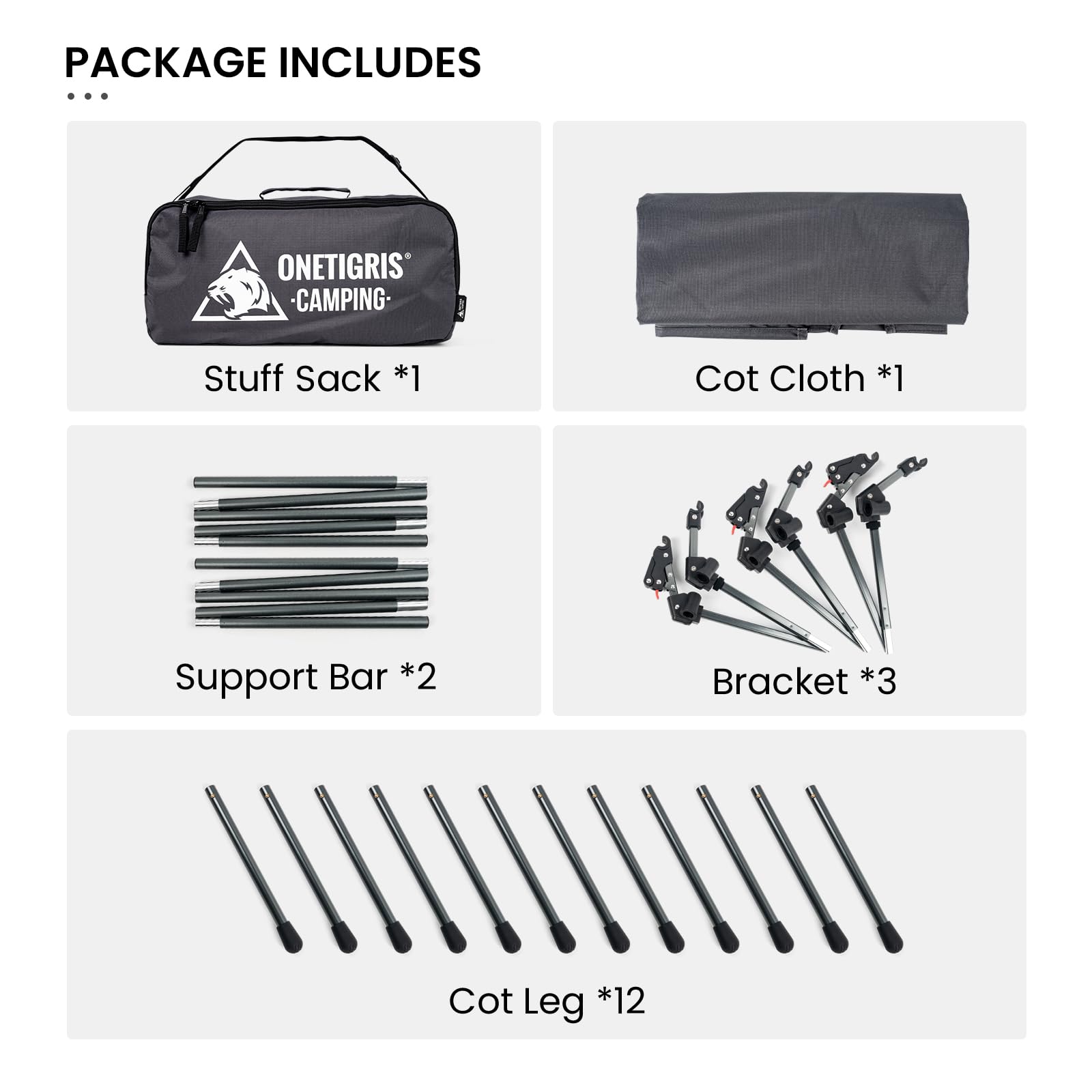 ★ 𝙃𝙚𝙞𝙜𝙝𝙩 𝘼𝙙𝙟𝙪𝙨𝙩𝙖𝙗𝙡𝙚 - Our camping bed provides 2 height options with the 12 extending legs, 15.75" (40cm) for a higher heigh, perfect to use on grass or muddy/ damp ground, or as a bench to sit on; Lower 5.9" (15cm) height to use as a tent cot or on solid ground, save your back from sleeping on the rough or cold/ wet ground for the best outdoor sleeping experience