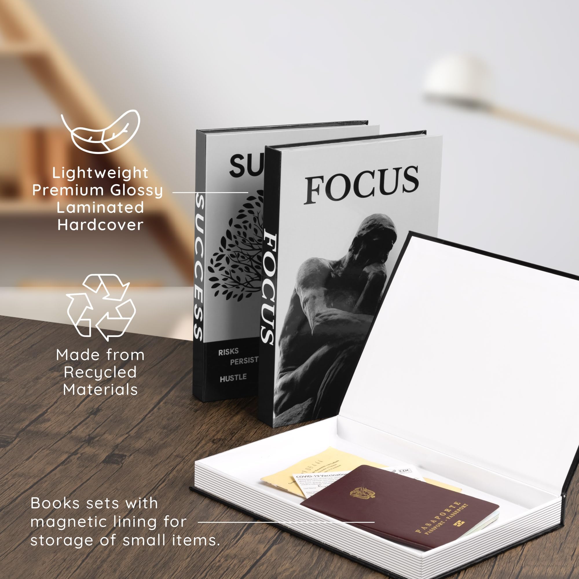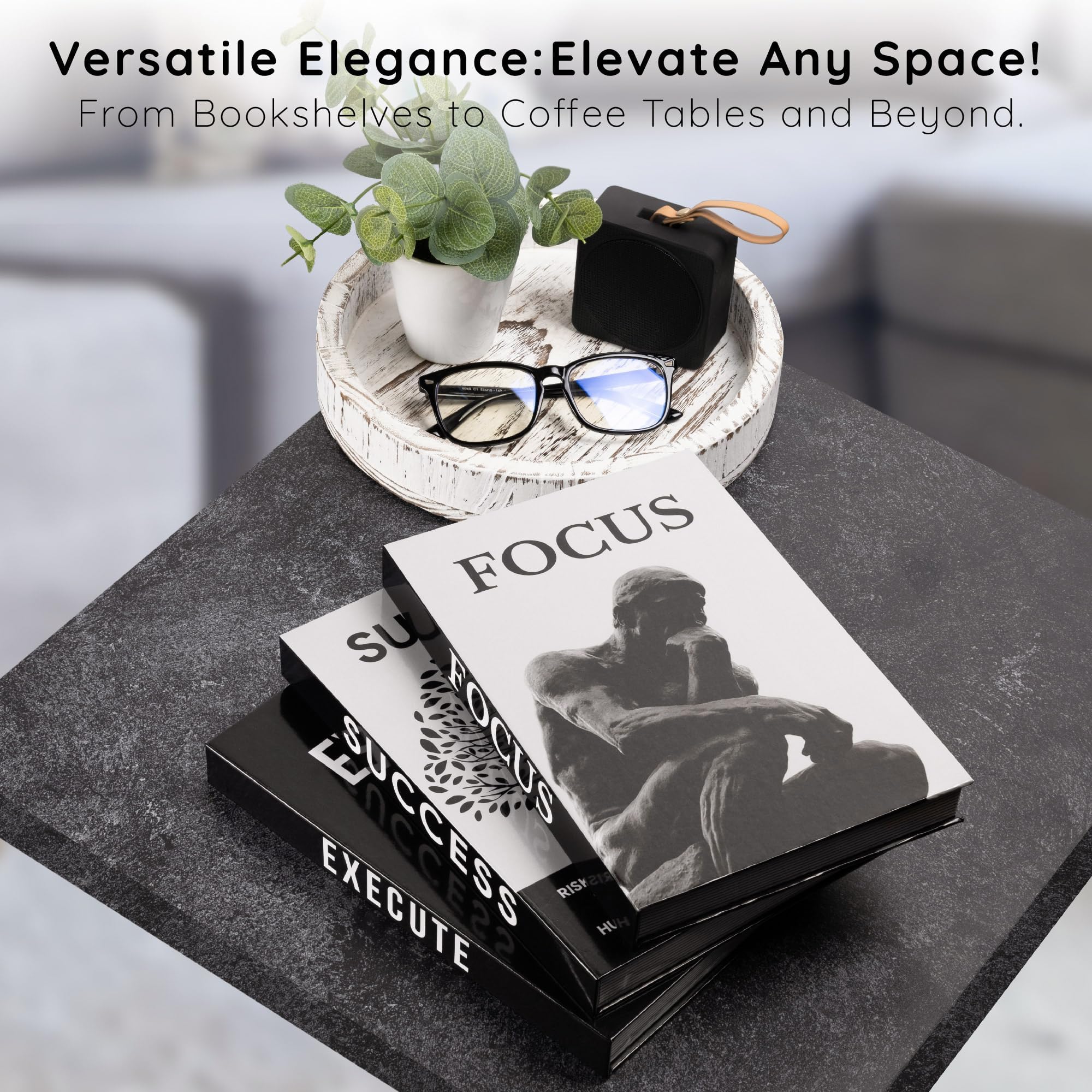 Inspiring Workspace – With bold titles like Focus, Execute, Success, this decorative book set serves as a daily reminder to stay motivated and productive, helping to create a positive, goal-driven atmosphere in your home office or workspace.