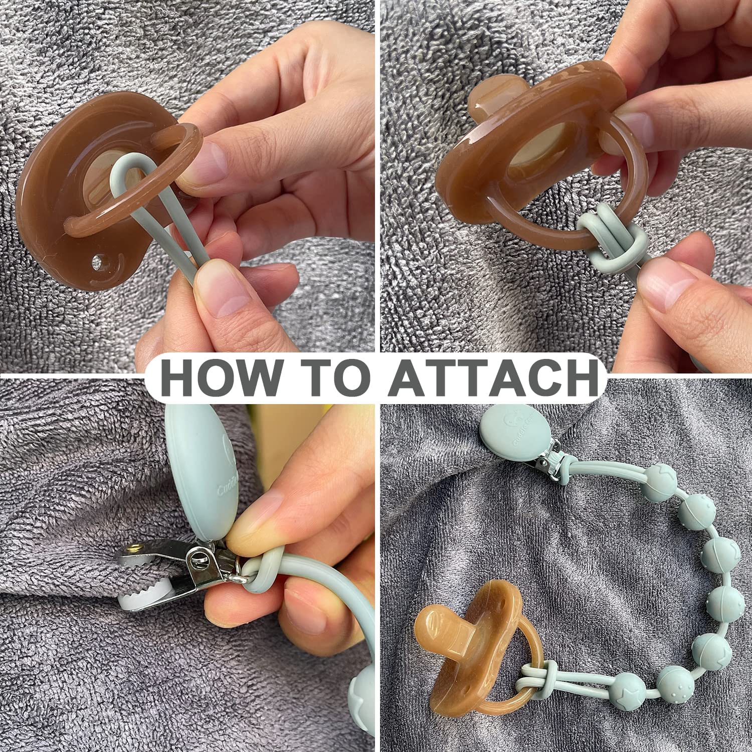 EASY TO USE: Simply thread the loop through the pacifier’s hole, then attach it to your baby’s clothing or other accessories—keeping the pacifier securely in place and clean at all times