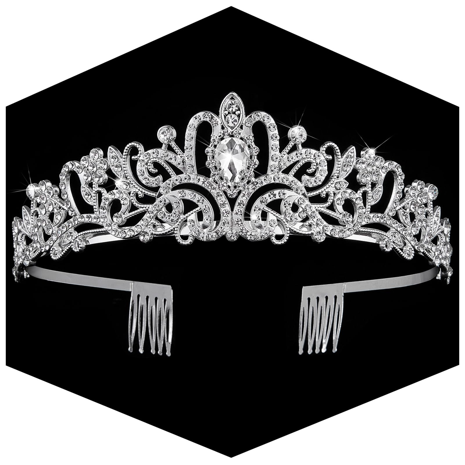 One Size Fits Most: Our crown is silver and measures approximately 1.77 inches (4.5cm) tall and 5.12 inches (13cm) in diameter. Specially designed to fit women's head size, suitable for adults, perfectly fit your charming hairstyle and face shape.
